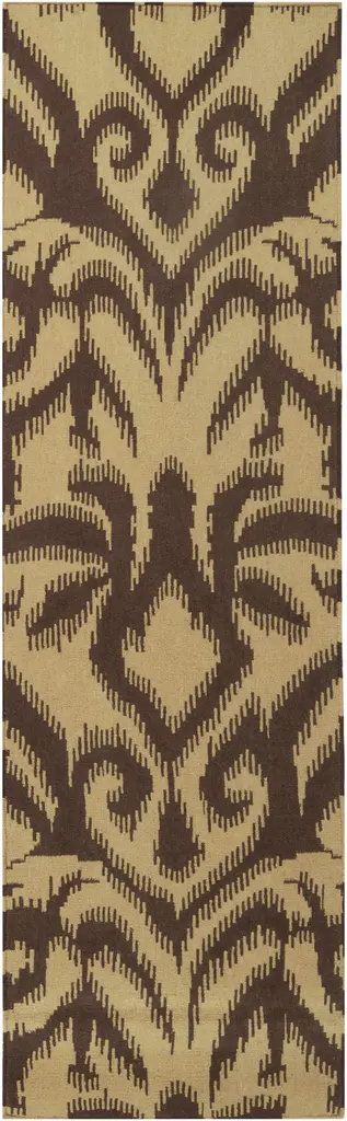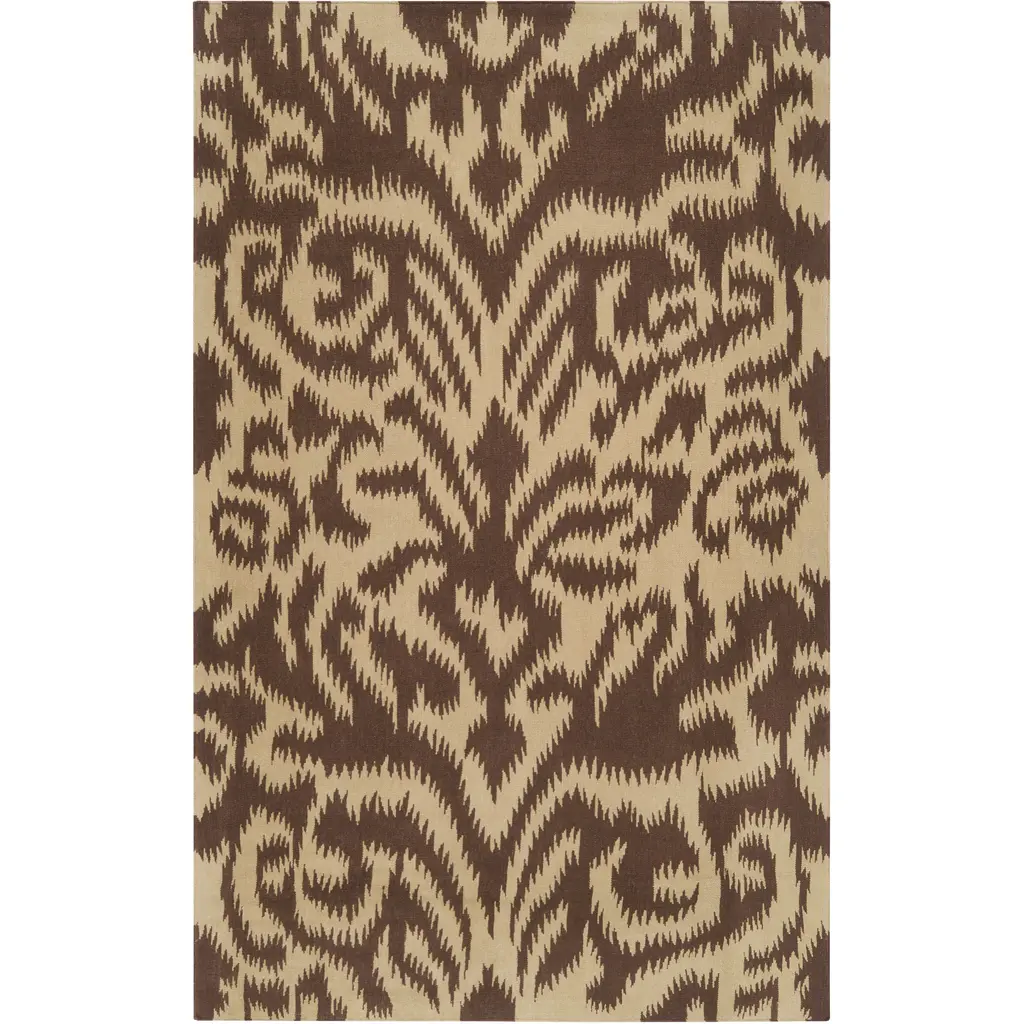 Collection: Waterlooville Colors: Dark Brown, Mustard Construction: Hand Woven Material: Face: 100% Wool Pile: No Pile Made In: India Thickness: 0.16" Price Range: $$$$$ (Most Affordable)