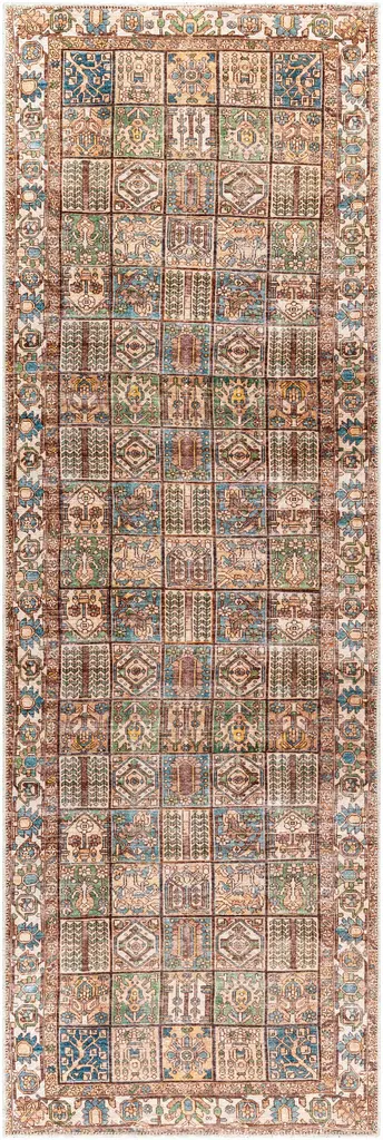 Collection: Watermount Colors: Mustard, Navy, Lime Green, Dark Red, Beige Construction: Machine Woven Material: 100% Polyester Pile: No Pile Styles: Traditional Backing: Cotton Machine Washable: Yes Made In: Turkey Thickness: 0.08" Price Range: $$$$$ (Most Affordable)