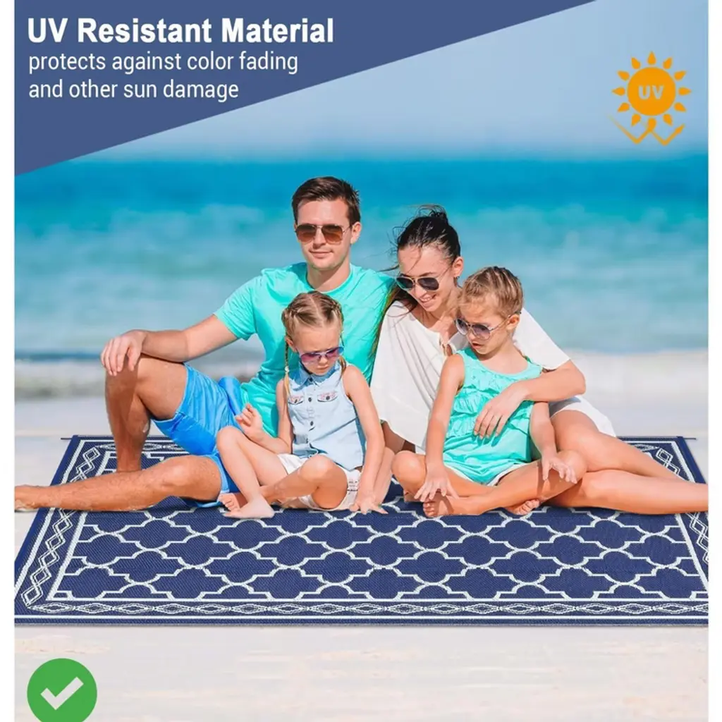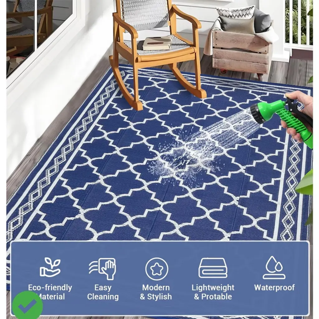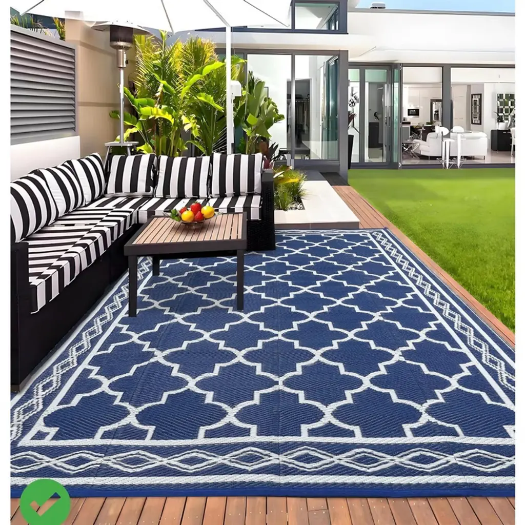 Waterproof Outdoor Rug For Patio 5X8/6x9 Reversible Plastic Straw Trellis Carpet, Modern Geometric Lattice Indoor/outdoor