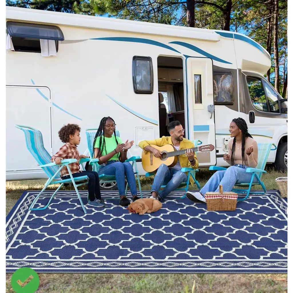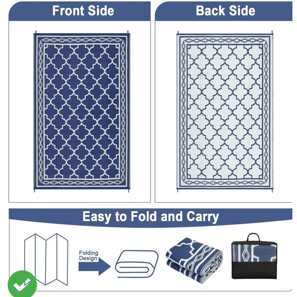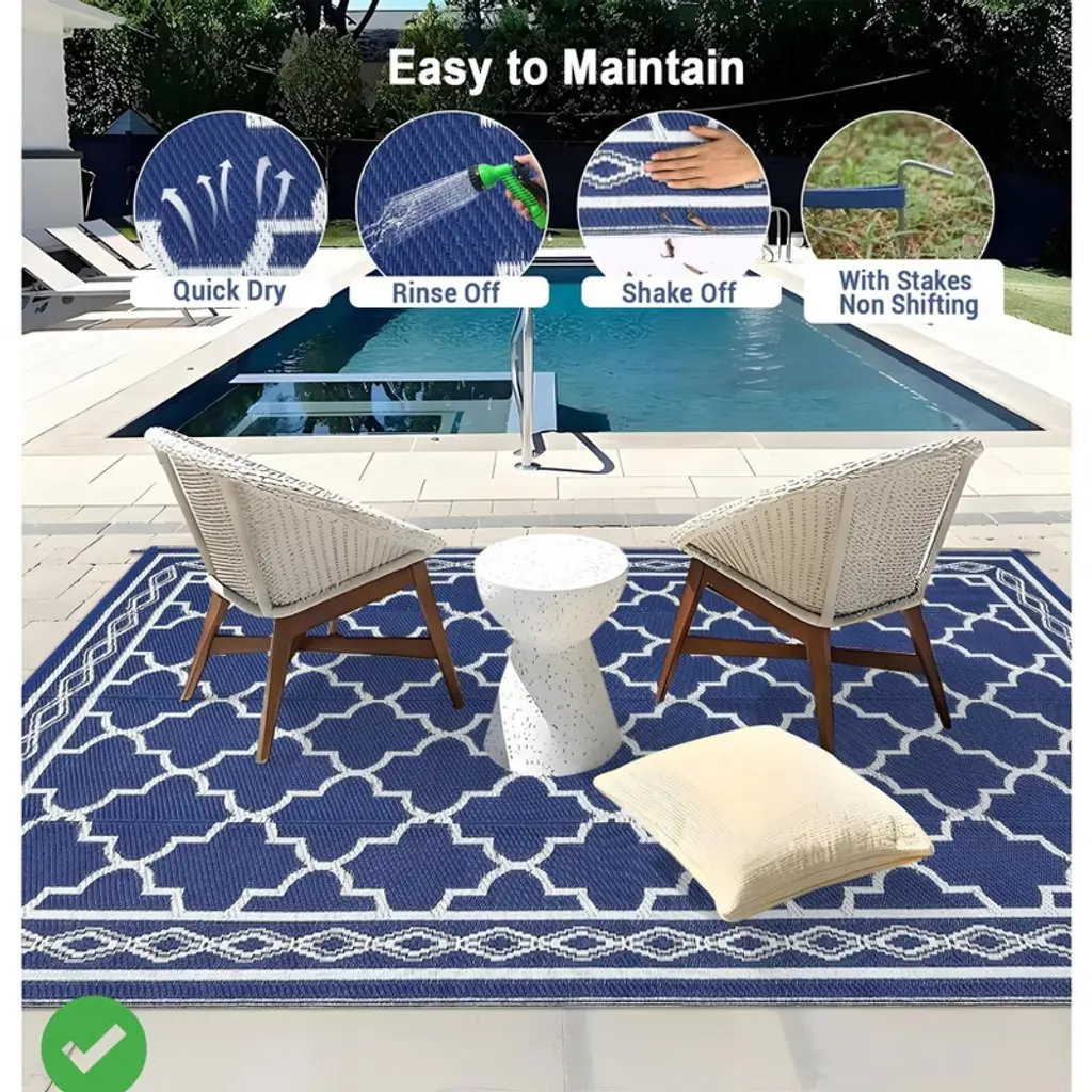 Outdoor Reversible Rugs for Patio 5x8/6x9 Ft Outdoor Plastic Straw Rug Waterproof Reversible Mat, Plastic Straw Rug for Indoor Outdoor Patio Porch, Deck, Backyard, Picnic, Navy&White.