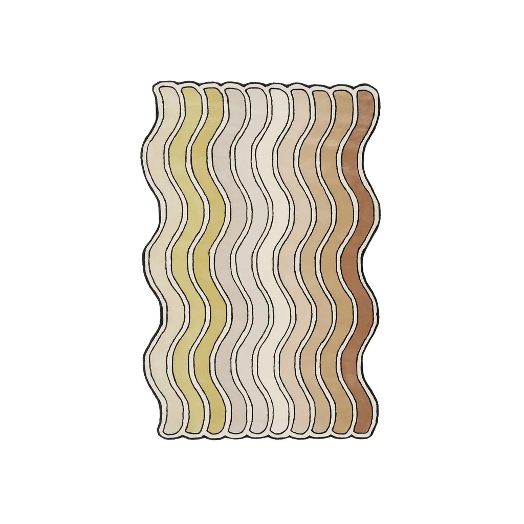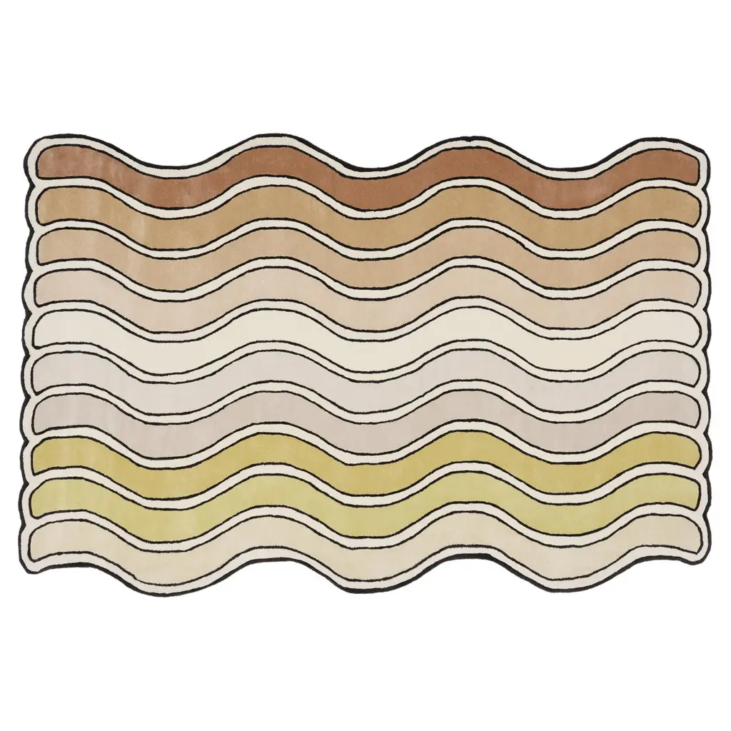 A celebration of playful, dynamic energy, the Wavy Desert Rug from Pieces is designed to animate your home with color and movement. This stunning rug is handmade in India from hand-dyed, premium New Zealand wool for a luxurious feel. Its design of undulating stripes creates an exaggerated sense of motion, while varied hand-tufting techniques result in multiple pile heights for a rich, sculptural texture. A fusion of contemporary artistry and traditional craft, it’s a bold and unforgettable centerpiece. Highlights:
