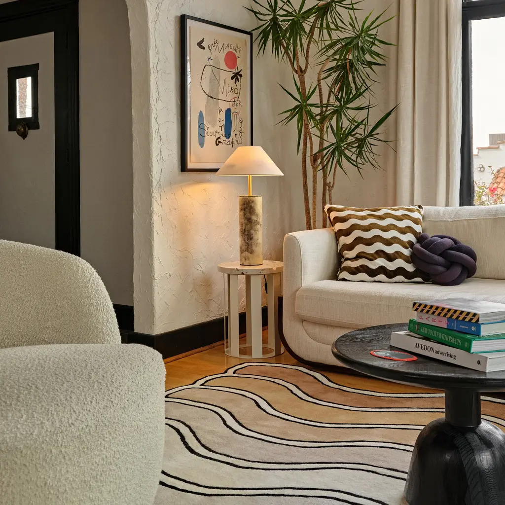 A celebration of playful, dynamic energy, the Wavy Desert Rug from Pieces is designed to animate your home with color and movement. This stunning rug is handmade in India from hand-dyed, premium New Zealand wool for a luxurious feel. Its design of undulating stripes creates an exaggerated sense of motion, while varied hand-tufting techniques result in multiple pile heights for a rich, sculptural texture. A fusion of contemporary artistry and traditional craft, it’s a bold and unforgettable centerpiece. Highlights: