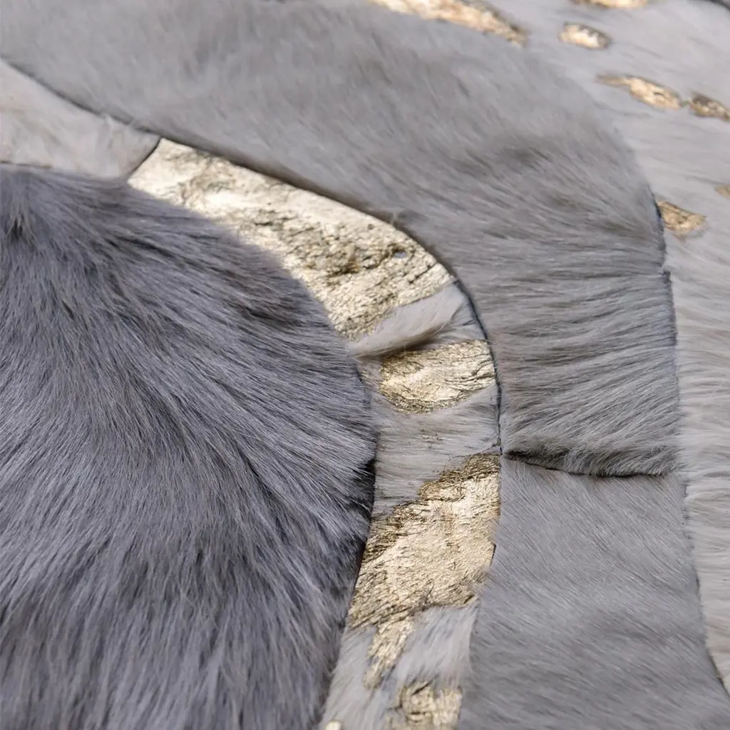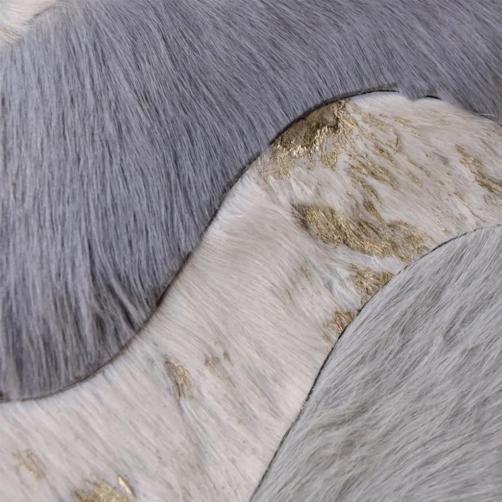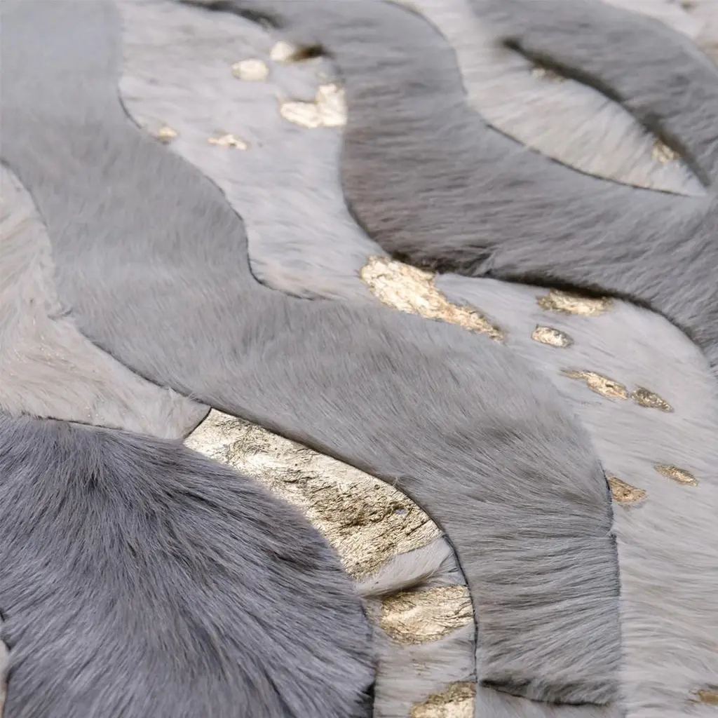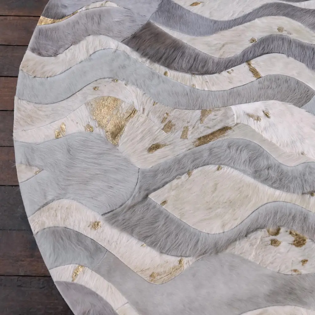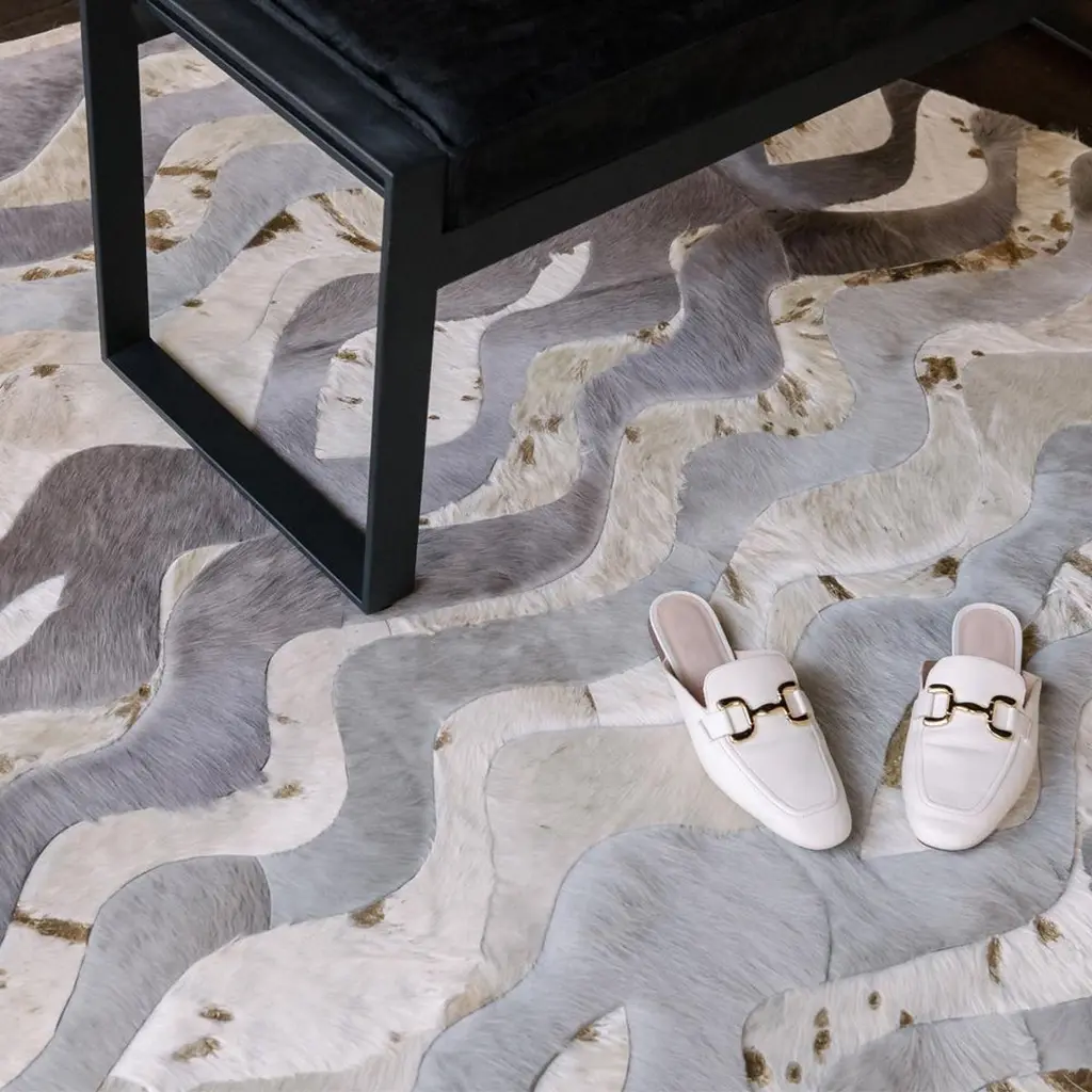 Make heads turn with the show-stopping new Susurro Rug in cream and gray. This grand scale masterpiece will bring glamor and a major wow factor into your interior.This Susurro features large format tiles in a gentle waves pattern in a striking yet simple color palette of creams and gray, punctuated with glittering gold. Or, opt for a silver or rose gold alternative (or no metallic, if you prefer).Utilizing Art Hide’s new Fusion stitchless construction technique, the rug’s finish is luxurious with longer hair and plush base (0.5cm/0.25inch) for a softer, cushier feel.The Susurro is fully customizable to any size, shape or color.