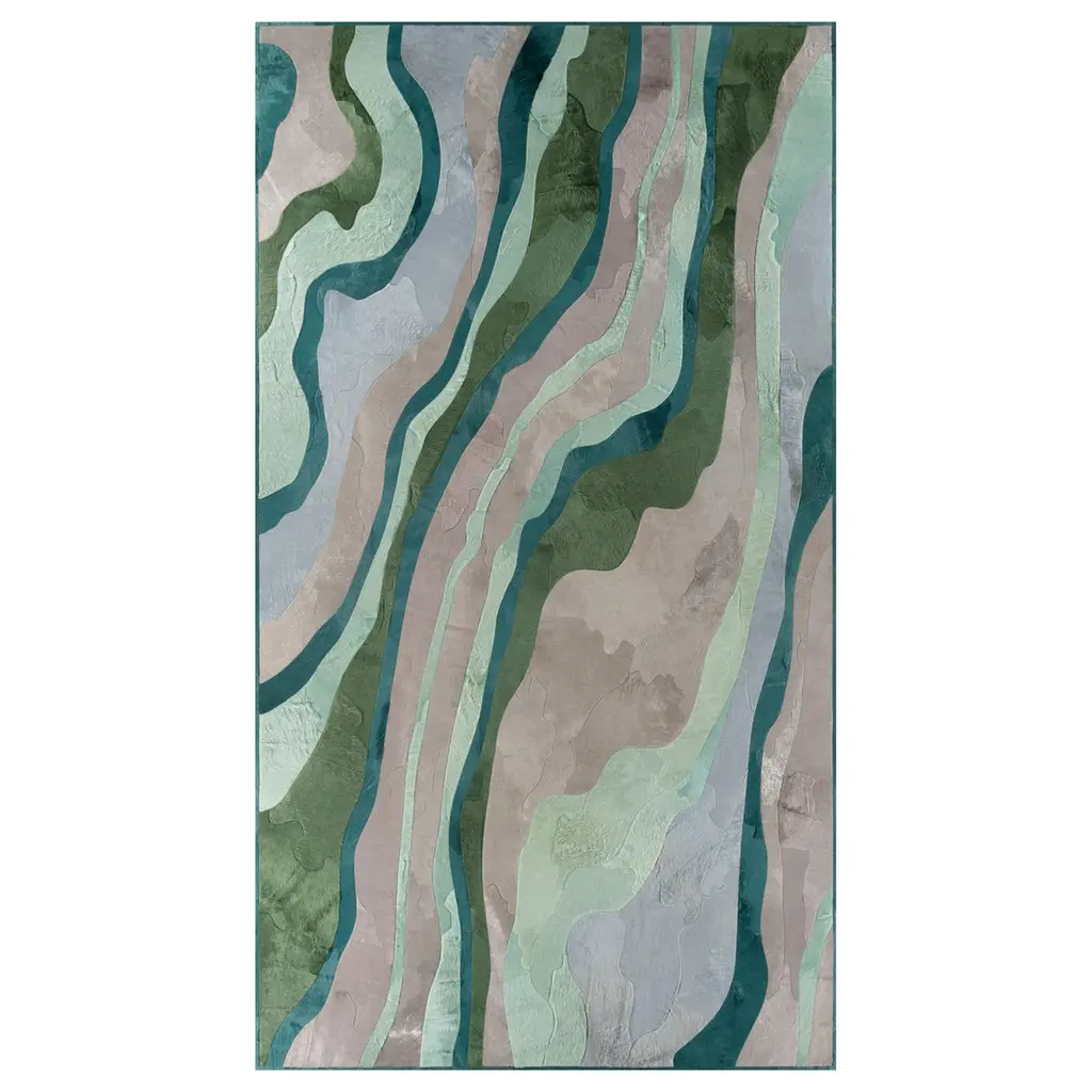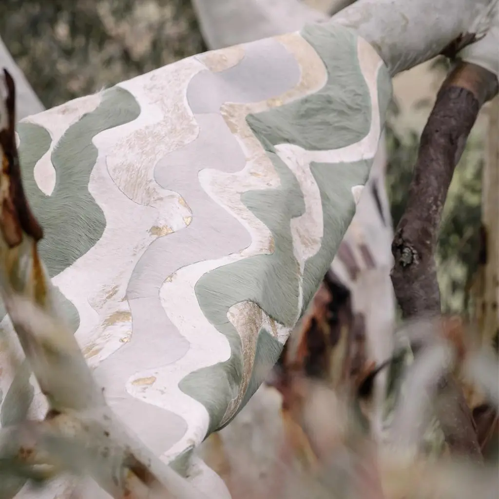 Wavy Pattern Cream Customizable Cowhide Jade Susurro Area Rug Xlarge