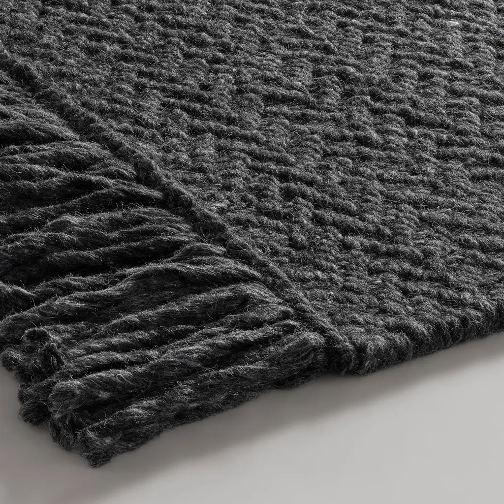 Help your room find its Way. Hand knotted wool in a classic Herringbone weave is trimmed with ample fringe.