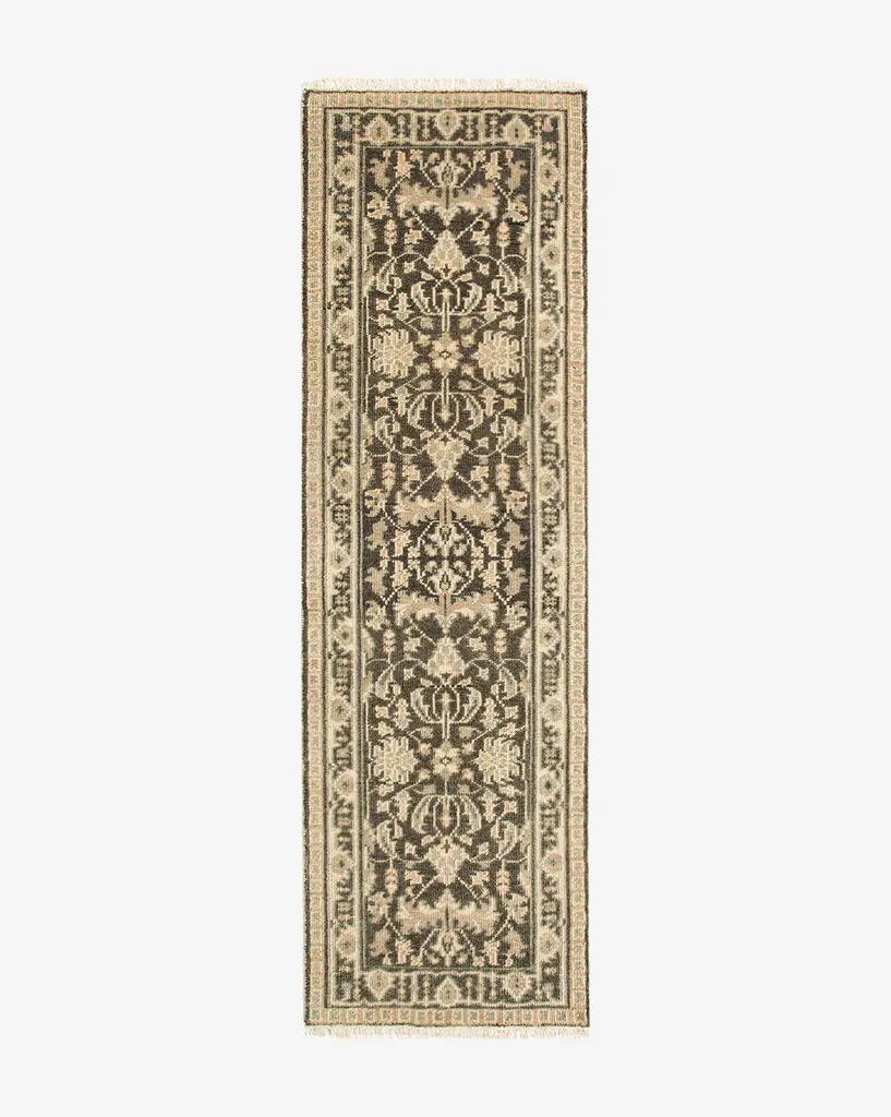 With an artisan feel that boasts intricate details, the Wayland Hand-Knotted Rug creates an atmosphere of elegance in your space with its dark green and brown tones. Soft underfoot and hand-knotted from 100% wool, the rug is both durable and beautiful in a design that grounds any room.