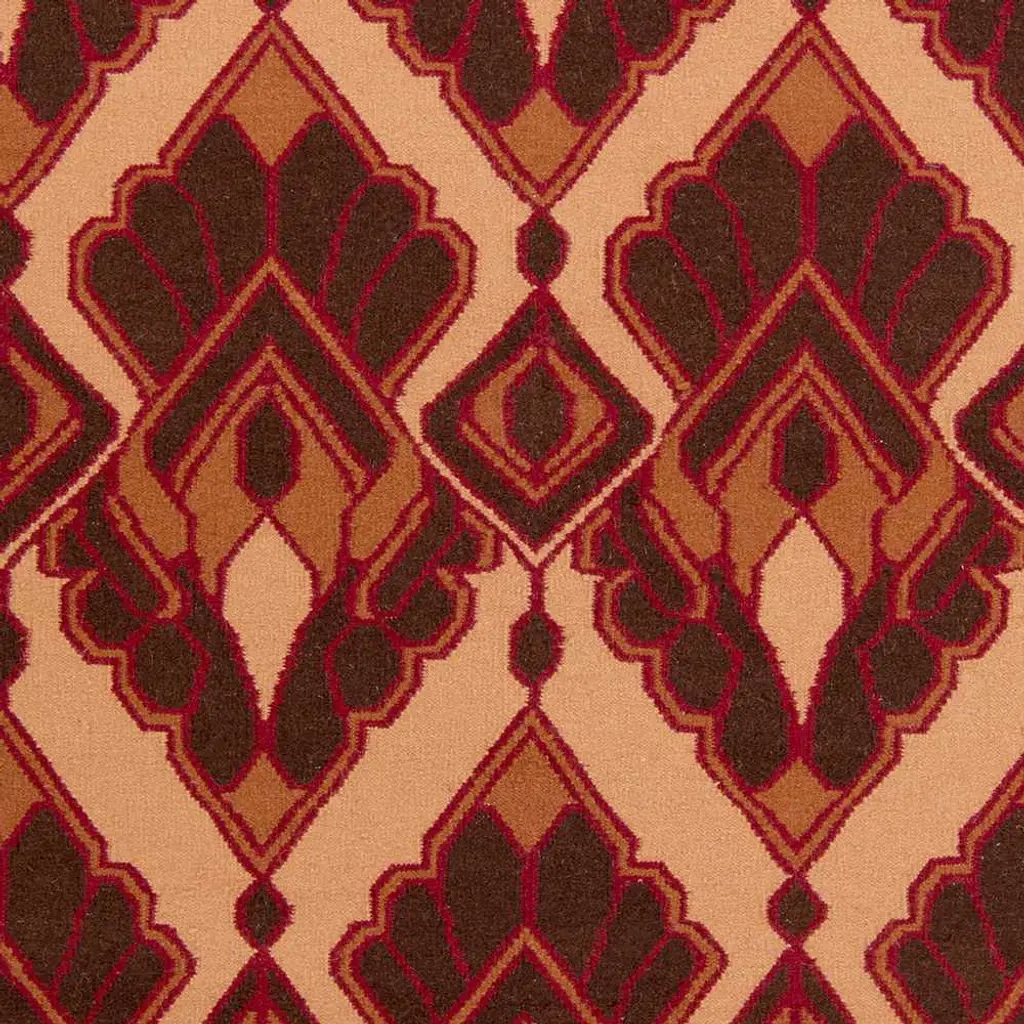 Collection: Wayne Colors: Burnt Orange, Dark Brown, Orange, Red Construction: Hand Woven Material: Face: 100% Wool Pile: No Pile Styles: Transitional,Bohemian Made In: India Thickness: 0.16" Price Range: $$$$$ (Affordable)