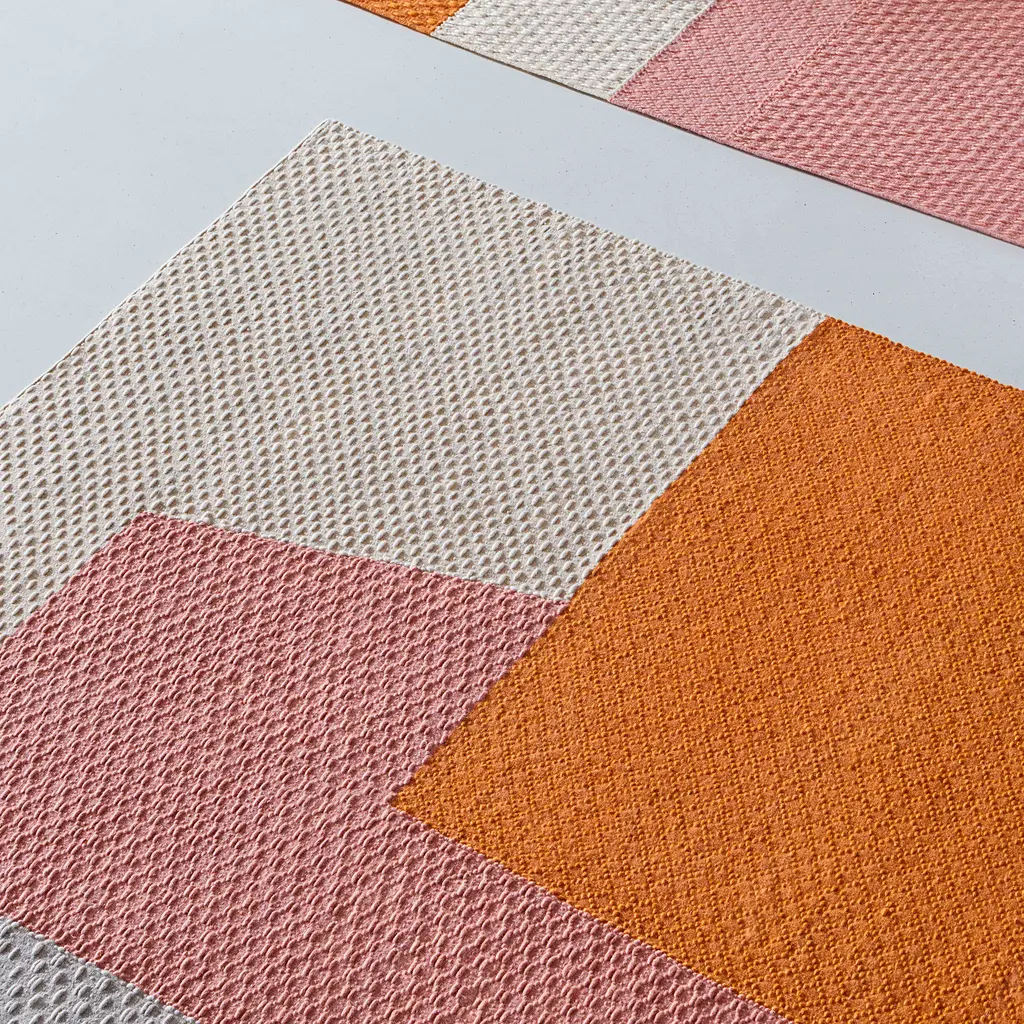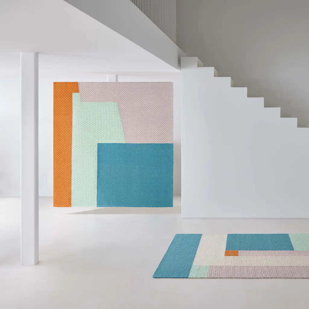 The Weave Space Hopper Square Rug by GAN Rugs brings bold geometry and rich texture into a single design. Created by Helena Rohner, this hand-loomed rug uses precise weaving techniques to create a structured surface with a rhythmic pattern. Inspired by mathematical sequences, its intricate composition introduces movement and depth to any space. Perfect for grounding a seating area or dining setup, the rug’s tactile weave and bold color contrasts make it a striking addition to modern interiors. Available in two colorways—Blue and Orange, each version plays with light and shadow, enhancing the sense of dimension.