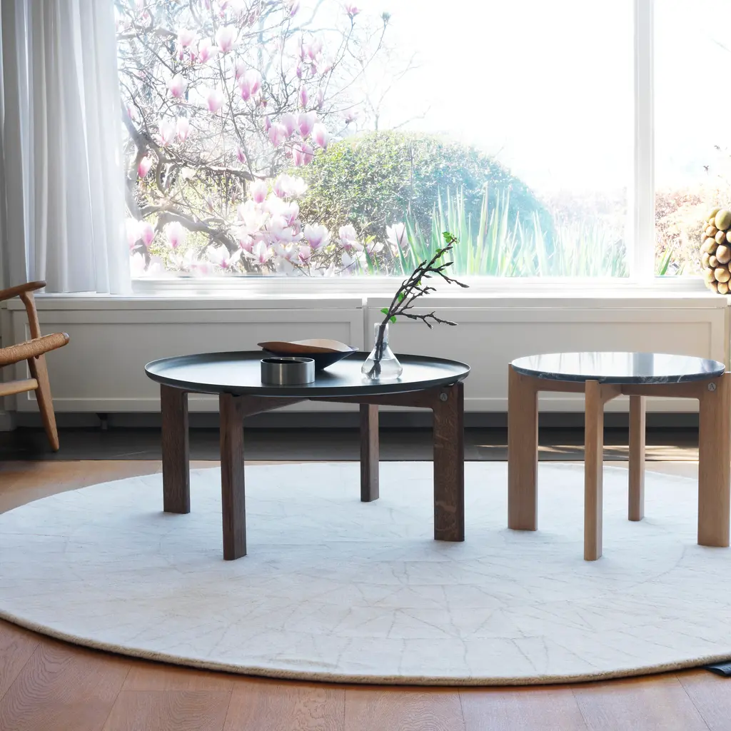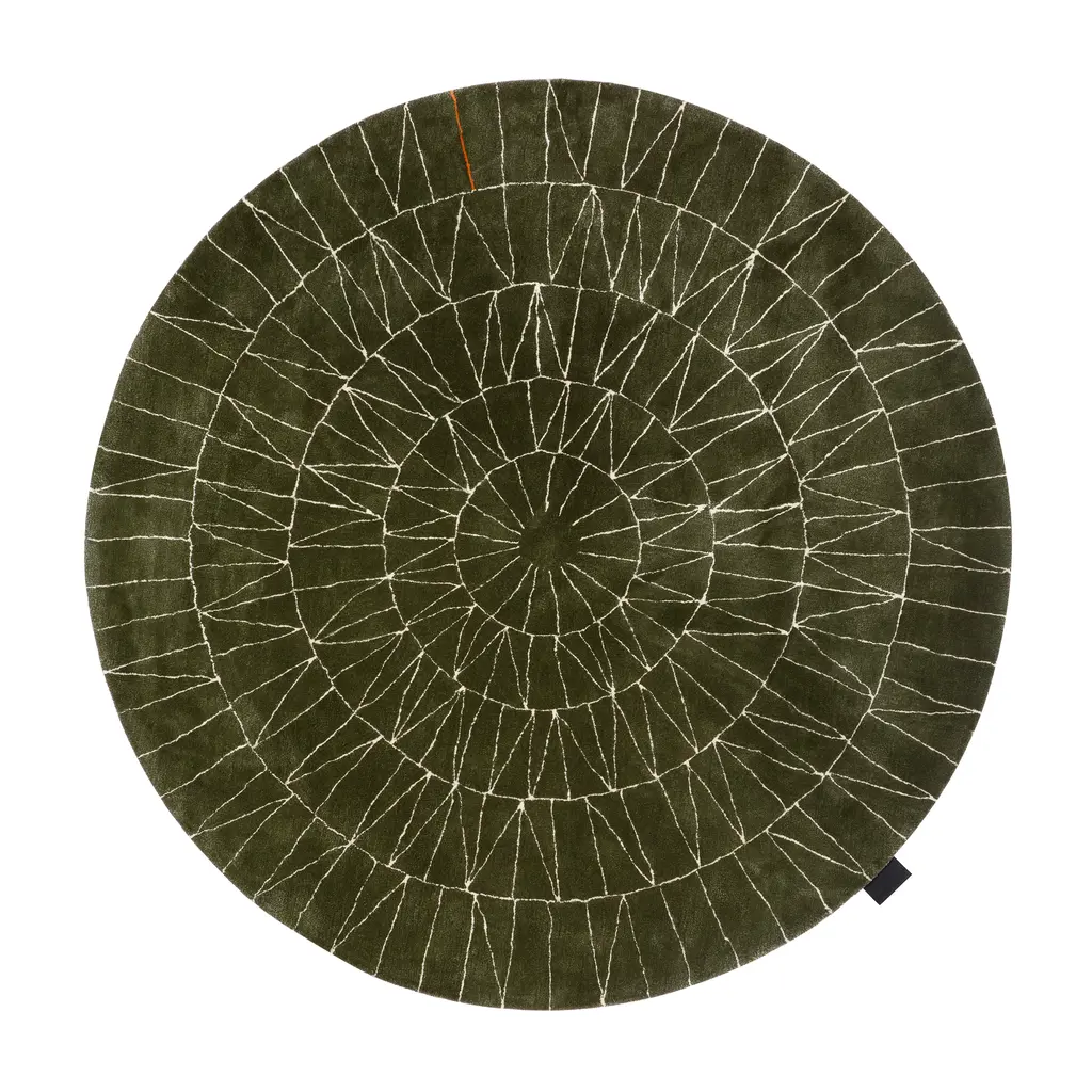 Circular motifs are a recurring theme throughout Marie-Louise Hellgrens' designs and Web offers a subtle twist, with the spontaneous charm of a hand-sketched geometric. Hand-tufted in a special wool and Tencel blend and offered in Asplund’s extensive range of unmatched colors, the pattern may look symmetrical at a first glance but offers a sense of droll wit with every repeated glimpse.