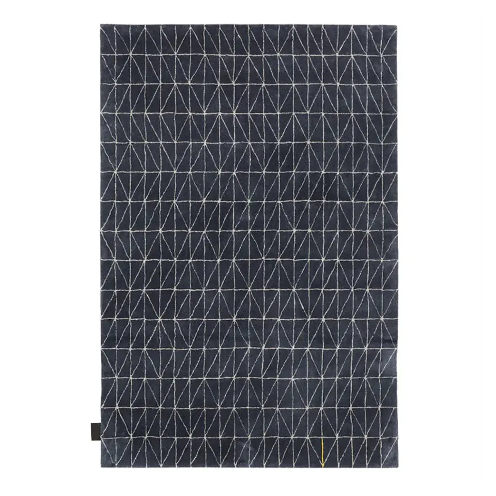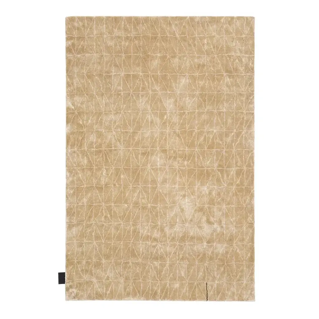 Wedge 2 brings a dedicated tonal coloration to Marie-Louise Hellgren signature rustic geometrics, revealing a set base color and the pattern repeated in neutrals. With an unmatched lustrous appearance, the hand-tufted rug is rendered in a sumptuous mix of 50% fine wool and 50% Tencel, a renewable natural fibers, crafted and finished by skilled artisans.