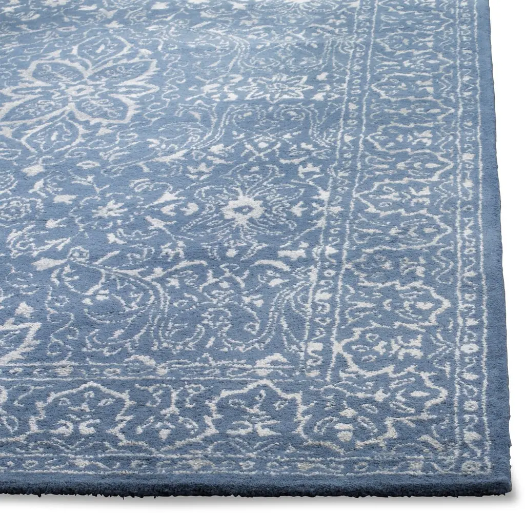 Crafted using a blend of soft wool and silky viscose, this rug shows off an elegant traditional design in blue and ivory. We recommend a rug pad to extend the life of your rug and keep it securely in place.