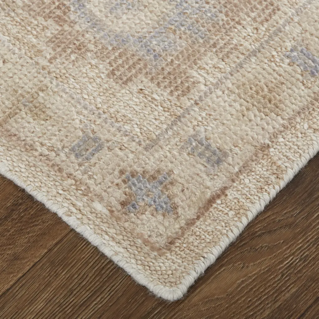 Collection: Wendover Colors: Tan, Orange, Blue Construction: Hand Knotted Material: Face: 100%PET Pile: Low Pile Pile Height: 0.35" Styles: Transitional,Bohemian & Eclectic,Vintage Backing: N/A Made In: India Thickness: 0.35" Price Range: $$$$$ (Premium)