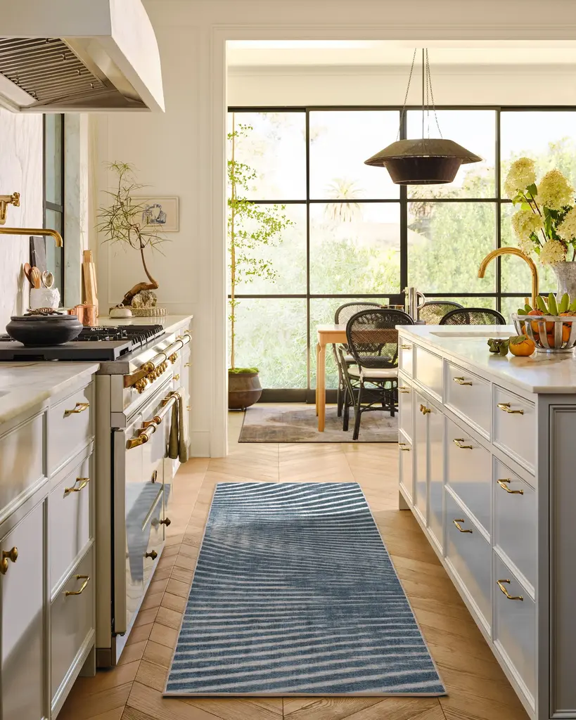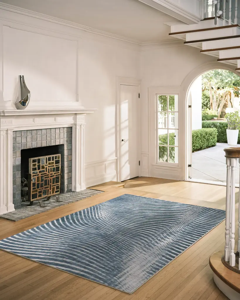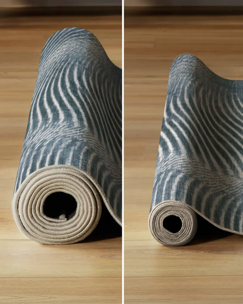 Inspired by the gentle movement of waves and waterscapes, our Wesley Blue Rug features fluid, organic lines that flow like water. The soft cream lines over a distressed blue background create a serene, easy-to-style aesthetic. Water-resistant, stain-resistant, and machine-washable. Rug colors may vary slightly according to your device and the lighting in your space.