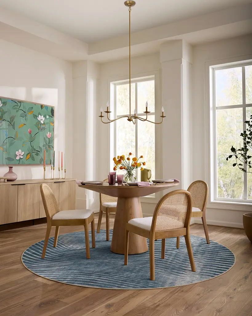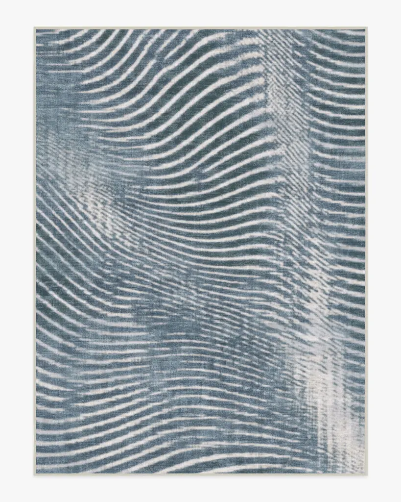 Inspired by the gentle movement of waves and waterscapes, our Wesley Blue Rug features fluid, organic lines that flow like water. The soft cream lines over a distressed blue background create a serene, easy-to-style aesthetic. Water-resistant, stain-resistant, and machine-washable. Rug colors may vary slightly according to your device and the lighting in your space.