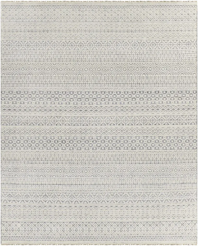 Collection: Wessington Colors: Light Gray, Cream, Medium Gray, Navy Construction: Hand Knotted Material: 60% Wool, 20% Polyester, 20% Viscose Pile: Low Pile Pile Height: 0.12" Styles: Traditional Made In: India Thickness: 0.31" Fringe Length: 1" Price Range: $$$$$ (Premium)