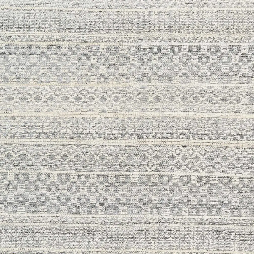 Collection: Wessington Colors: Light Gray, Cream, Medium Gray, Navy Construction: Hand Knotted Material: 60% Wool, 20% Polyester, 20% Viscose Pile: Low Pile Pile Height: 0.12" Styles: Traditional Made In: India Thickness: 0.31" Fringe Length: 1" Price Range: $$$$$ (Premium)