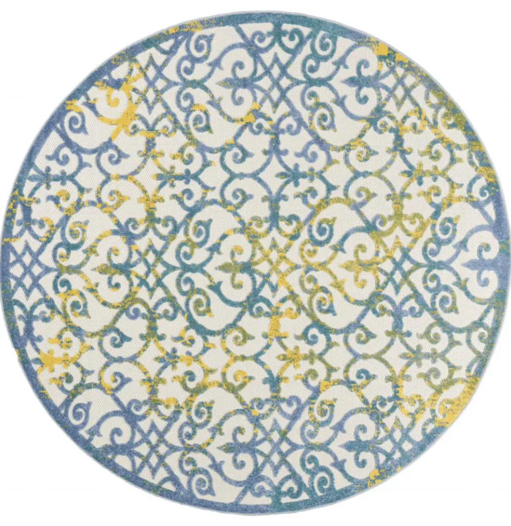 Create a lively tropical spirit and an inviting breezy atmosphere in your home with a West Indies Indoor/outdoor Rug from our Tropical Resort Collection. Everyone will delight in the space defining design brought to your porch, patio, kitchen, or bathroom by this area rug. The artistic and colorful design is printed on a soft polyester base with a skid resistant backing, making it a perfect way to add color, flare and personality to any indoor or outdoor space. To clean, use a mild soap and lay flat to dry.