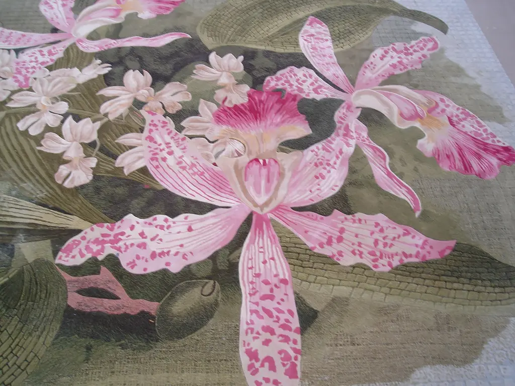 Western European Contemporary Rug Tufted Wool Luxury Collection 'Orchids'This exclusive couture level design, contemporary Area Rug is Hand made tufting with our new Luxury quality standard: 100% New Zealand Semi-Worsted fine wool, surface finishing 6mm pile high by the icon of style in carpet industry Alexander's Collection. The product of this special quality could be made only by Master craftsmen with skills and experience not less than 10 years in the industry.The original design was hand drawn with special care to give the effect of vibrant colours. The rug is made in cut pile technique and with a 3D effect to the finished product. Each limited edition product has Certificate of Authenticity.Samples:If you require a sample before placing order for full size rug, you are welcome to ask that. We usually make 50 x 50 cm sample of a fragment of the rug.Production time for the sample is 4-5 weeks. We charge for the sample based on the rug price (1 sqm price). The sample is free of charge in case of the order placement/ It is deductible from the rug price. You would see that in your final invoice then. However, shipping via a courier is not deductible.