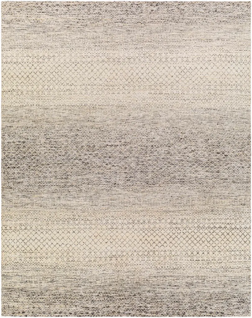 Collection: Westlock Colors: Black, Charcoal, Medium Gray, MediumGray, LightGray Construction: Hand Knotted Material: 70% Wool,30% Viscose Pile: Low Pile Pile Height: 0.15" Styles: Transitional,Bohemian Made In: India Thickness: 0.31" Price Range: $$$$$ (Premium)