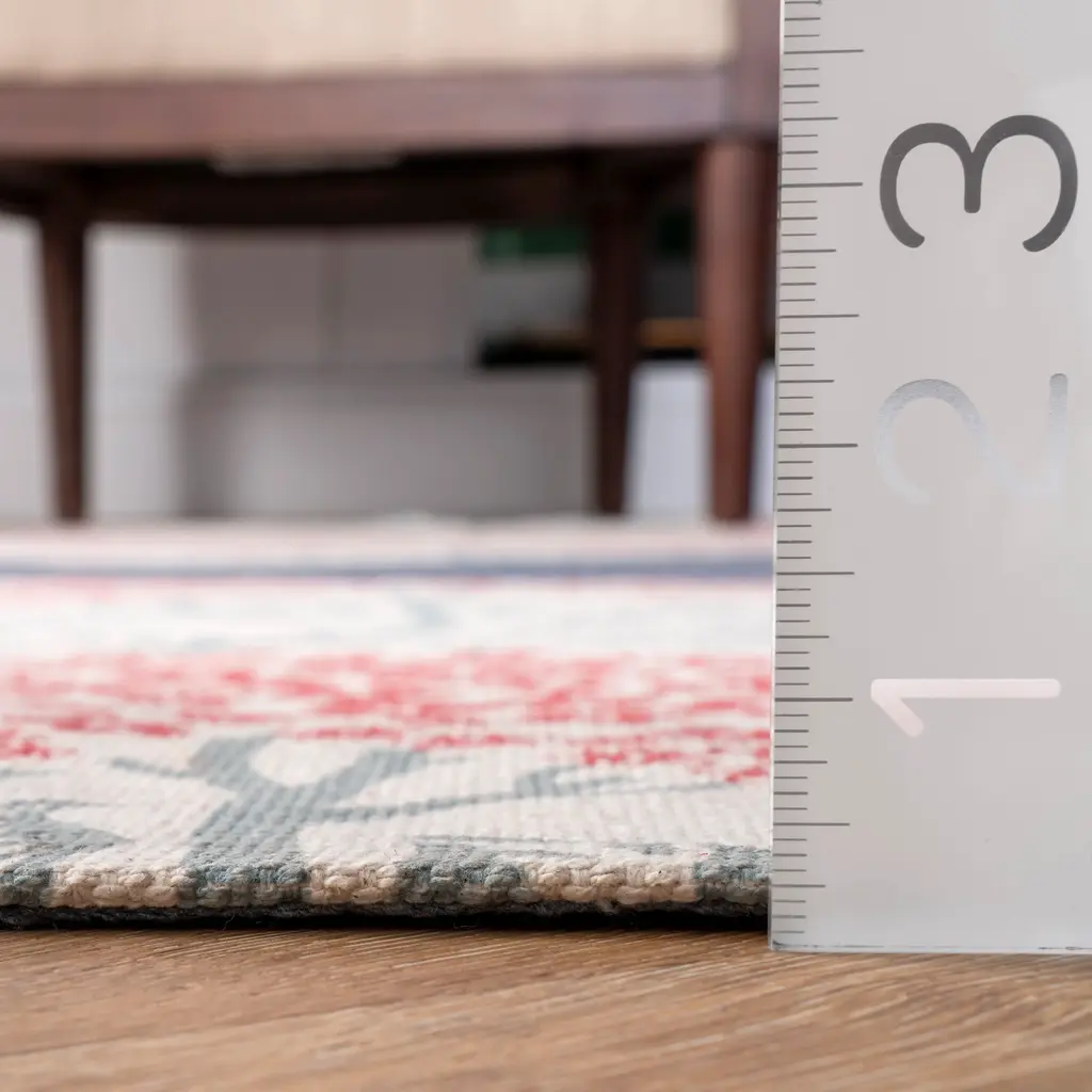 Let the one-of-a-kind look of this floor piece elevate your home! Crafted of luxurious cotton fibers, it features a flatweave whale pattern in a bold color scheme. Contrasting tassels around the edge add just the right amount of flair, while its texture feels like the bliss of the ocean. Pair with nautical, coastal, bohemian, or contemporary decor. This area rug comes in a wide range of sizes. Enjoy our stunning pet-friendly and easy to clean area rugs today.