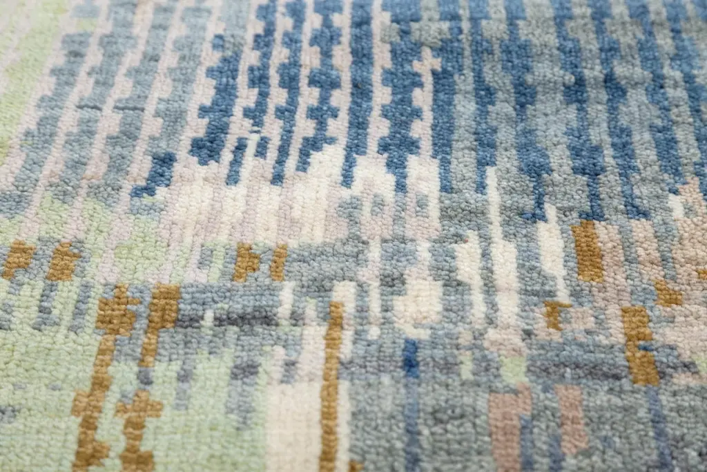Unveiling the unexpected, present this modern rug. The abstract masterpiece boasts a sky-like ground color, acting as a gentle canvas for the bold, warm tones that dance across its surface. Allow your imagination to take the lead as you interpret the intriguing shapes and forms that define this piece. Is it a fiery sunset melting into twilight? Or perhaps a field of poppies swaying in the summer breeze? The beauty lies in the open-ended nature of the design, inviting you to create your own personal narrative. This modern rug is more than just a floor covering; it's a conversation starter and a focal point that sparks creativity. It will elevate any space with its contemporary flair and bold color palette. Standard sizes for this rug include 274X365 cm, 244X304 cm, 183X274 cm, 183X183 cm, 152X244 cm, 123X183 cm, 92X152 cm, 76X304 cm, and 304X427 cm.