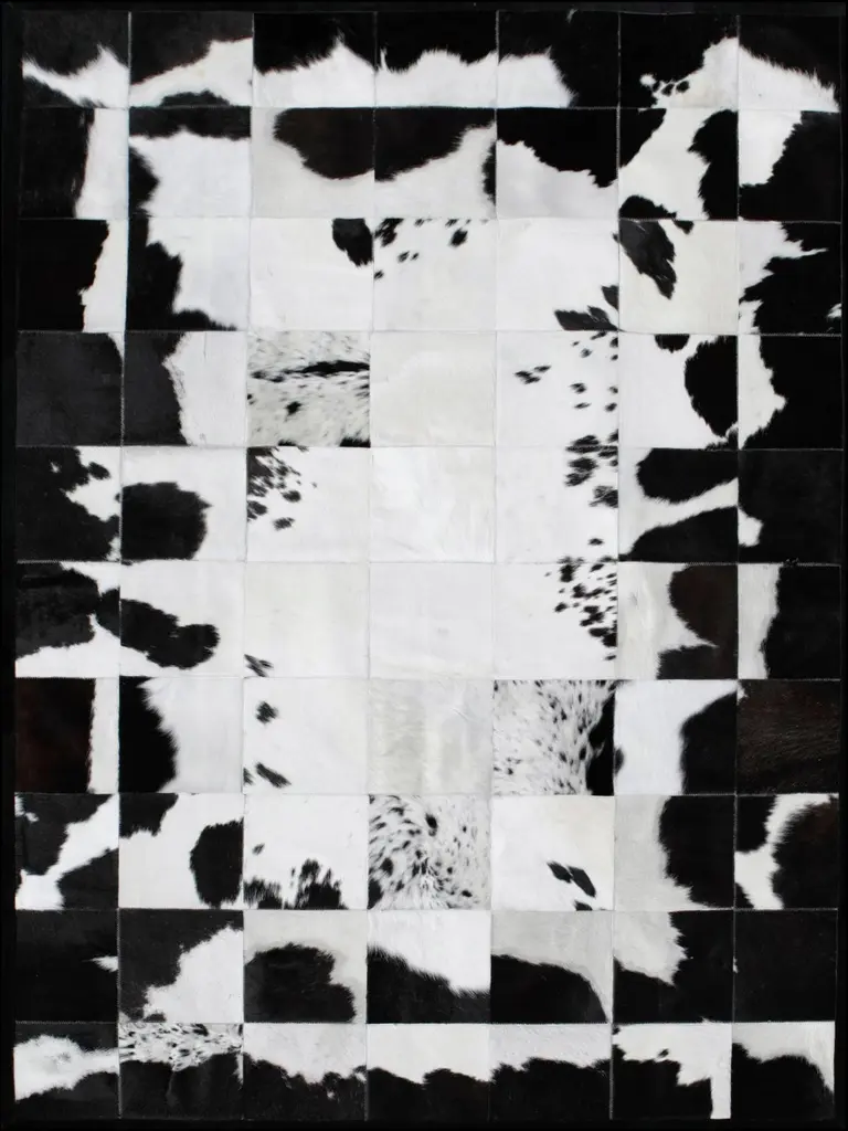 White And Black High End Customizable Rompecabeza Cowhide Area Floor Rug Small