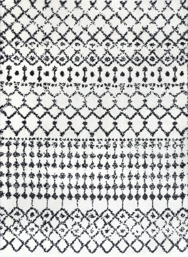 Collection: Interior Colors: White, Gray Construction: Machine Woven Material: 80% Polypropylene, 20% Polyester Pile: Plush Pile Pile Height: 1.18" Styles: Transitional,Bohemian Made In: Turkey Thickness: 1.38" Price Range: $$$$$ (Most Affordable)