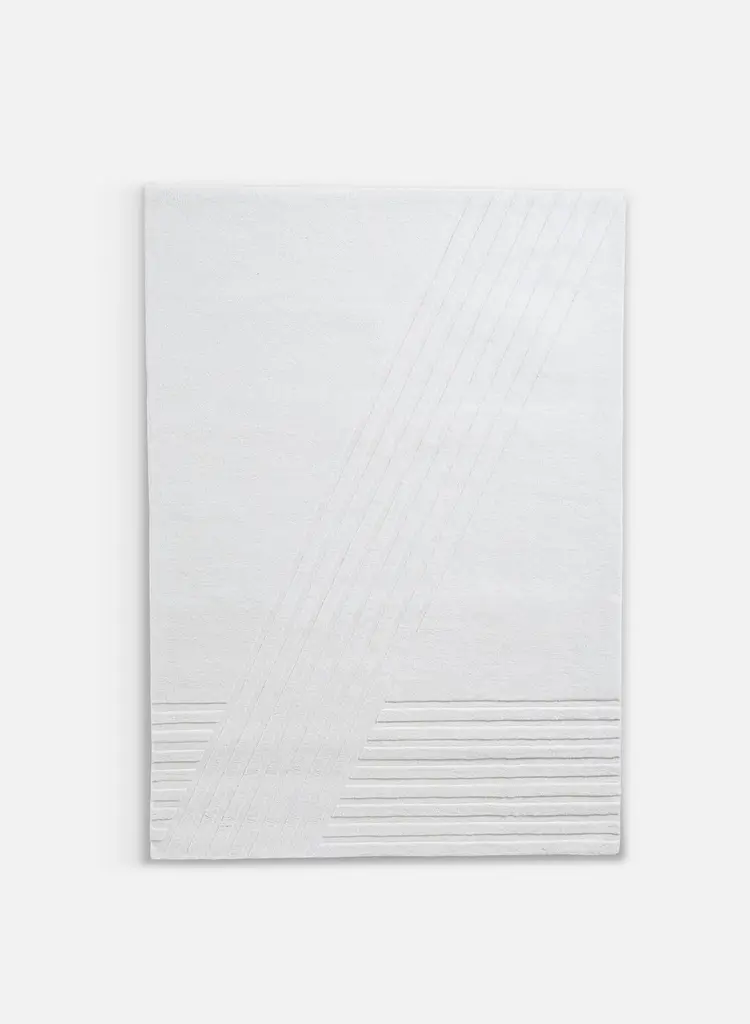 White Kyoto rug III by AD Miller.Materials: 80% wool, 20% cotton.Dimensions: W 170 x L 240 cm.Available in grey or off white.The hand-tufted wool rug, Kyoto, takes its inspiration from the distinctive pattern found in traditional raked japanese rock gardens. The rug comes in four sizes, each with an individual design . Available in a natural grey and off white tone, kyoto provides a complementing base for a furniture setting while also bringing a sense of the textured landscape inside.AD Miller is a Los Angeles based multi-disciplinary studio, founded by architect and designer Adam Miller. The creative studio’s scope shows in its comprehensiven work, including architecture and interiors, sculptures, lighting and homeware products.Prior to the establishment of his own studio, Adam gained over 10 years of experience working for award-winning architects in the Los Angeles area. He is educated in architecture and design in the US and Denmark, giving him an inherent connection to Denmark and Danish design brands. Living abroad in Italy as well, Adam’s design philosophy is deeply rooted in a holistic approach and an appreciation of the art of storytelling. Making his creation tell its own story - through powerful and honestdesign.WOUDThe founders, Mia and Torben Koed, decided to put their 30 years of experience into a new project. It was time for a change and a new challenge. The challenge was to build an ambitious design brand from the ground up with high-quality materials and great attention to the little details. With a drive to create new originals, the WOUD collection is founded upon the idea to look ahead instead of looking back and share the love for honest design. Therefore, we are eager to discover and develop new ideas whether it being in form, function or choice of material.