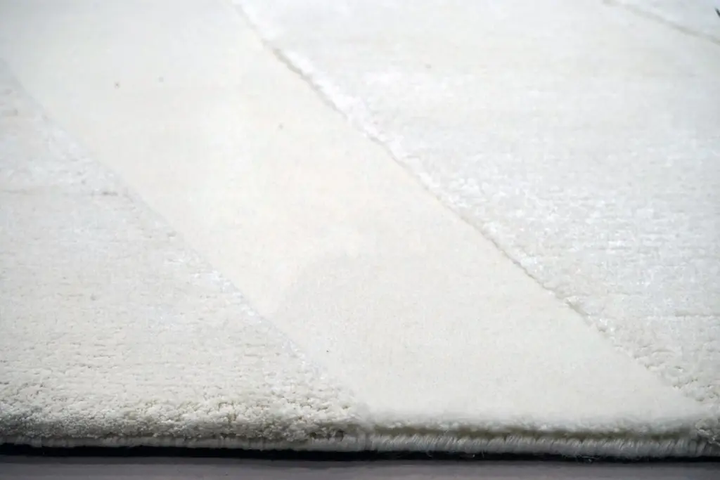 White Silk, Wool Rug India Hand Knotted Highest Quality Carpet Minimal Design
