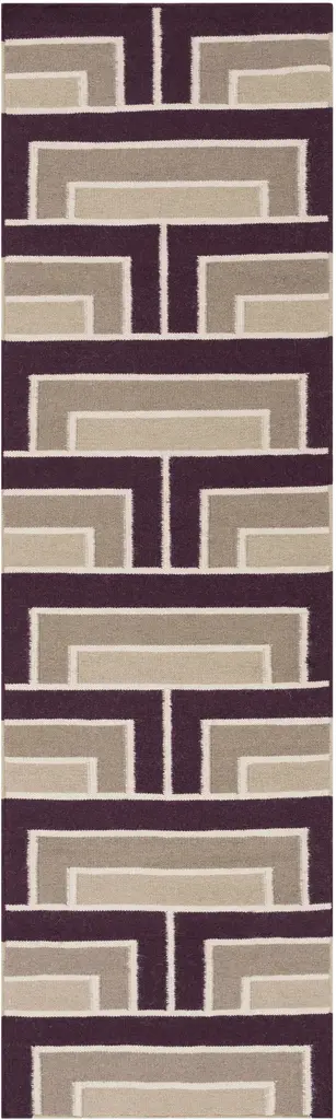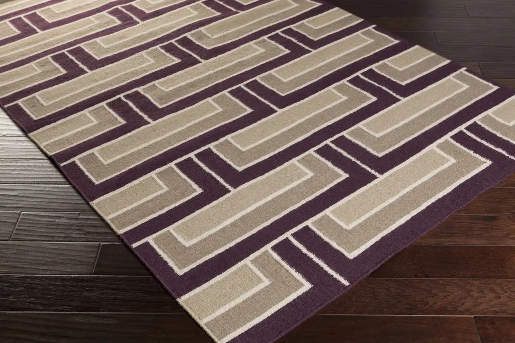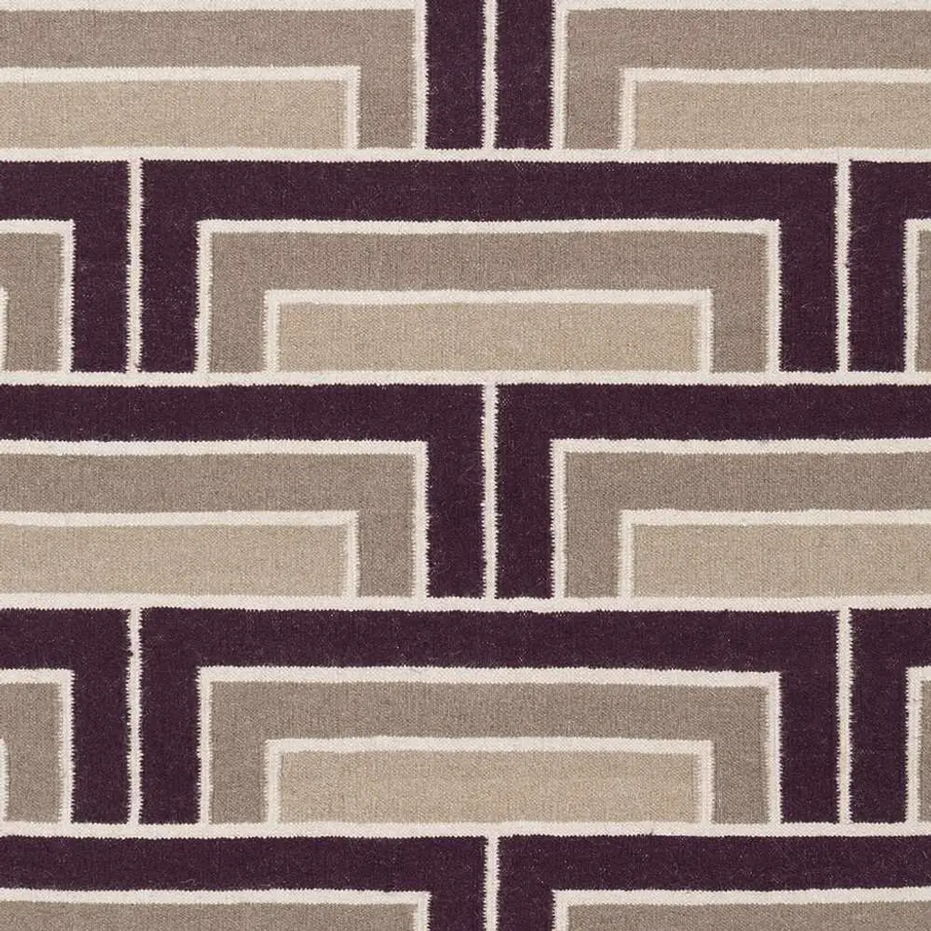 Collection: Whitingham Colors: Taupe, Plum, Dark Red, Peach Construction: Hand Woven Material: Face: 100% Wool Pile: No Pile Styles: Contemporary Made In: India Thickness: 0.16" Price Range: $$$$$ (Affordable)