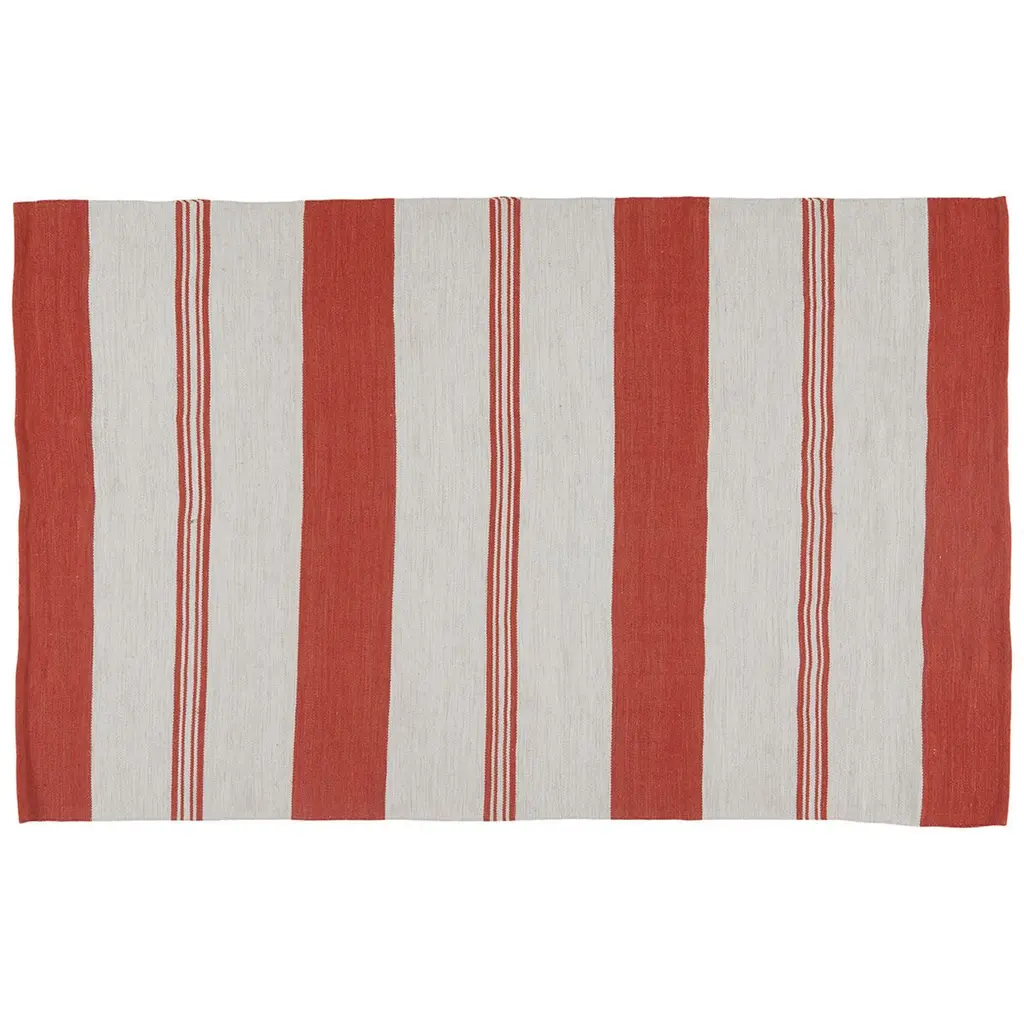 Elevate your space with this flat weave rug. With its classic horizontal stripes, it brings a timeless charm to any space. Made from PET yarn, a material derived from recycled plastics, it not only enhances your home but also supports eco-conscious efforts. Ideal for high-traffic areas, indoors or out, it's designed for effortless upkeep. For optimal performance, we recommend using a rug pad.