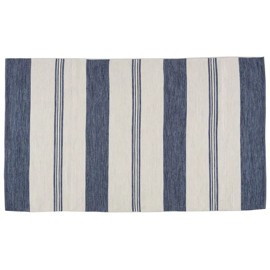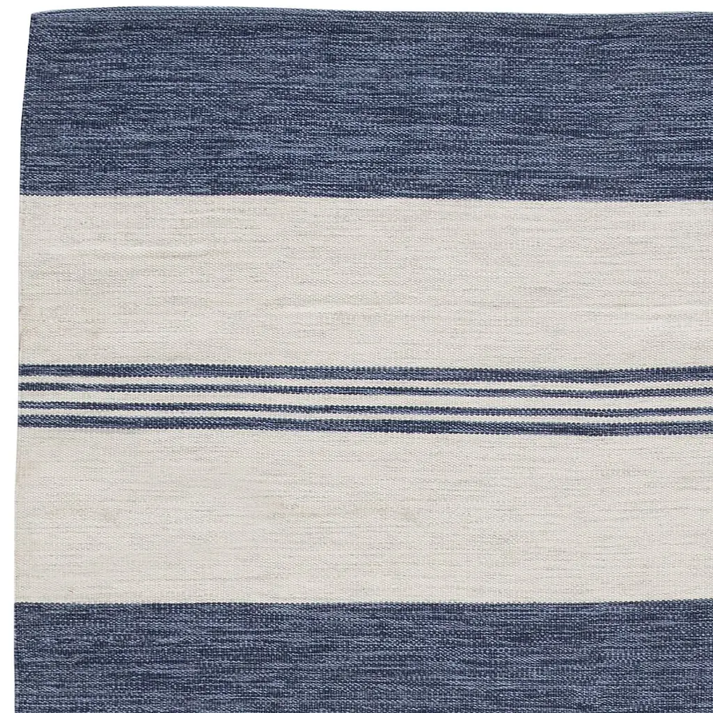 Elevate your space with this flat weave rug. With its classic horizontal stripes, it brings a timeless charm to any space. Made from PET yarn, a material derived from recycled plastics, it not only enhances your home but also supports eco-conscious efforts. Ideal for high-traffic areas, indoors or out, it's designed for effortless upkeep. For optimal performance, we recommend using a rug pad.