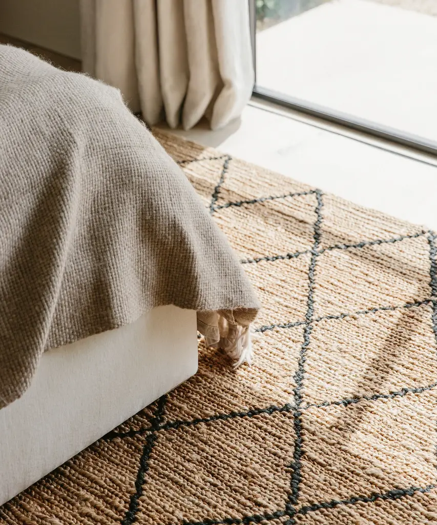 Wilder Diamond Jute Rug Natural Handwoven by artisans in India, this classic jute rug features diamond pattern detailing that makes it the perfect addition to any space. From the living room to the bedroom, we love adding this natural texture to any well-dressed interior. 100% jute rug with diamond pattern detailing. Handwoven in India. Indoor use only. Loose fibers are common, clip with scissors. Jute is a natural material, so slight variations may occur—every rug is unique. Rugs in direct sunlight will fade over time. For optimal look and feel, rotate your rug every 3-6 months.