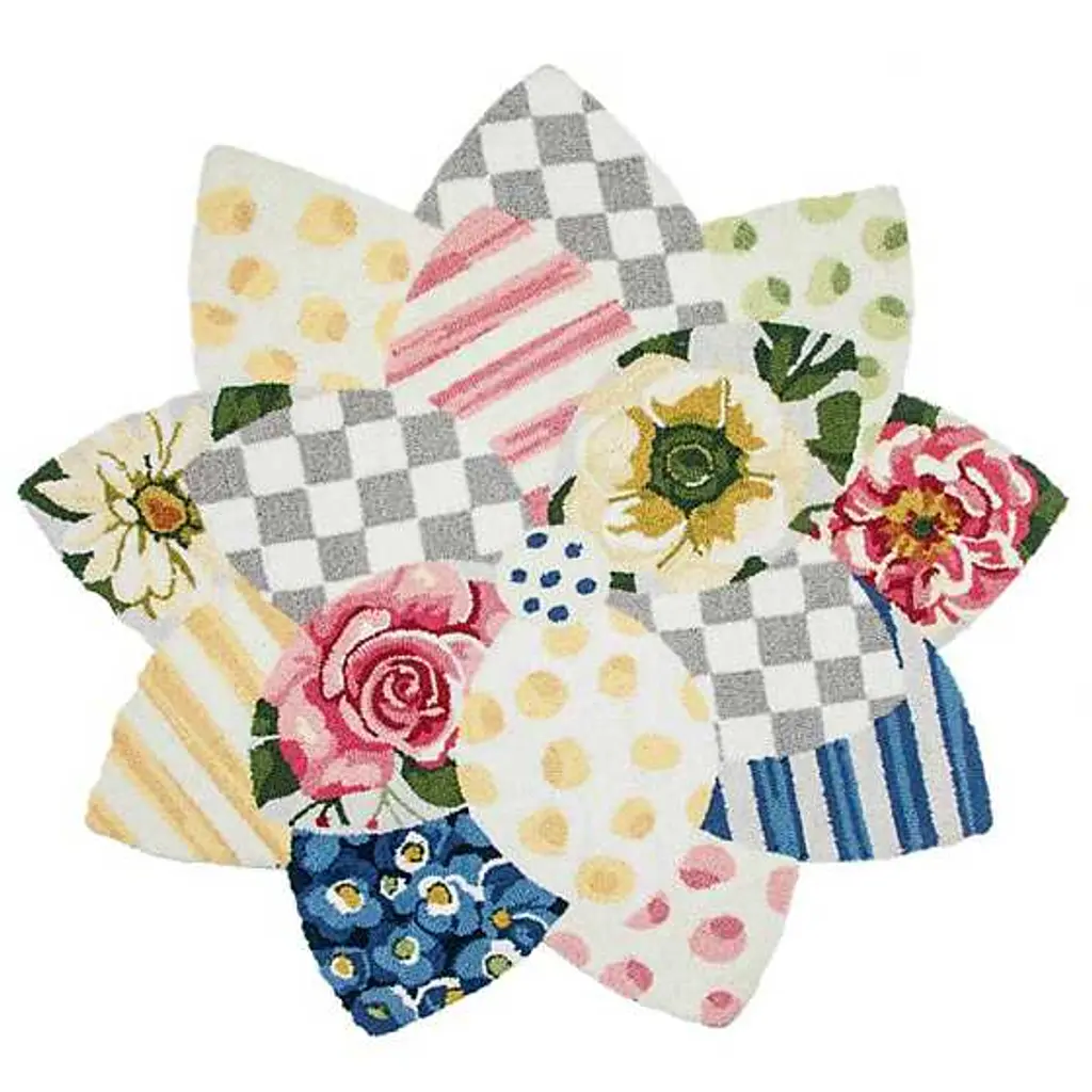 Set the scene for whimsy. This hooked, 100% polyester rug makes a welcoming statement, featuring a floral shape with our Wildflowers pattern and Sterling Check® on its petals.