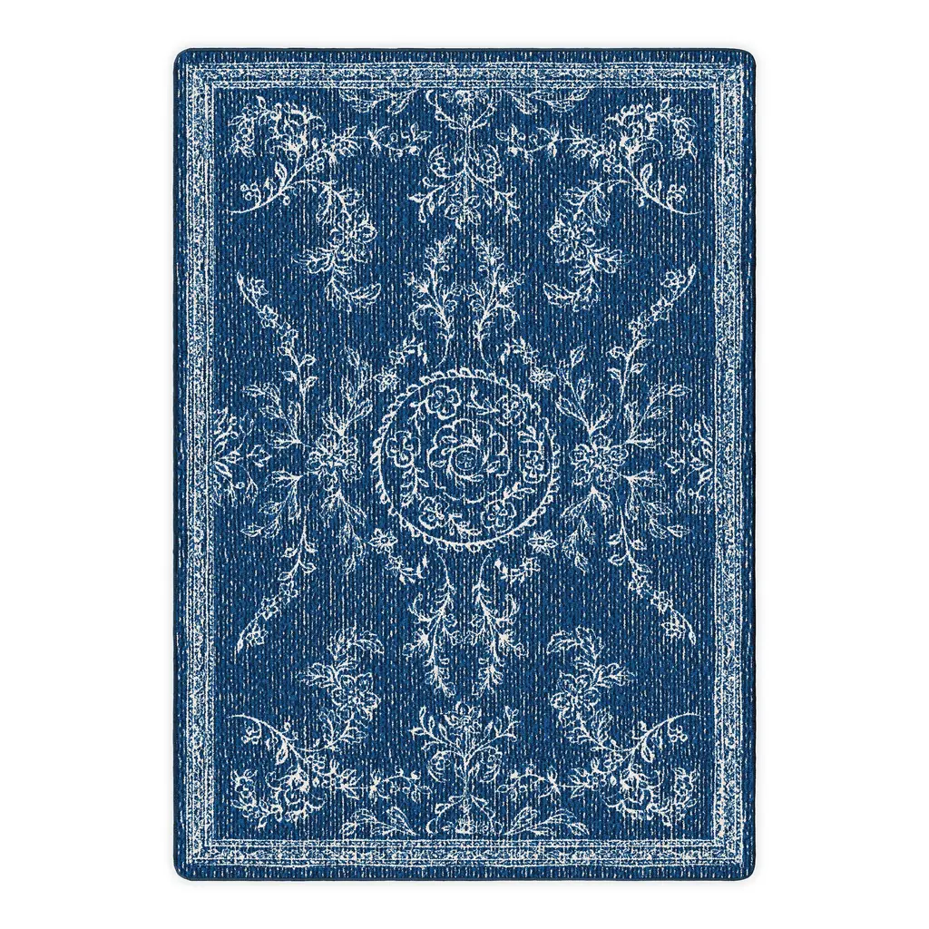 Our Willow Blue EnduraStran® Rug is not only beautiful with its vibrant color, scroll border and fantastic detailed design, but it's made in the USA of commercial-grade EnduraStran® nylon, so it's extra durable and fuss-free as well. The rug features an elegant scroll pattern at the border set against a gorgeous rich blue background that will work wonders in any type of room or style of decor. And because of its durability, it is ideal for high-traffic and family-friendly areas, like living room, family room, den and bedroom. EnduraStran® fabric is commercially rated for its superior durability, and this rug is fade-, fire- and stain-resistant. The serged edges also provide long-lasting wear and reduced fraying. Easy to care for with vacuum and spot cleaning with water as needed. Low pile is approx. ¼"H; sizes are approximate. Can be used with a rug pad. Made in the USA.