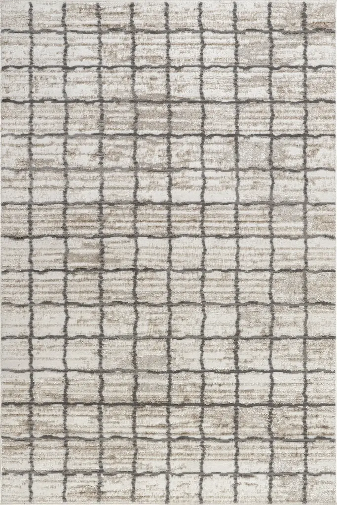 Where geometry relaxes into creative expression, the calculated flow of the Windowpanes rug offers a wavy, weathered grid across a background of beige in a thick plush pile. 100% Polypropylene.