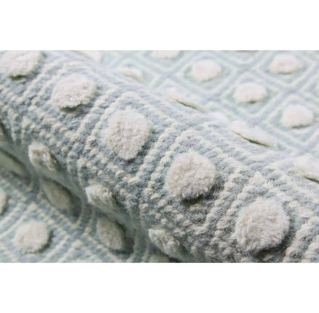 Handwoven of wool with a raised dotted design in a soft blue hue, this rug is great for bringing a hint of color and memorable texture to any room in your home. We recommend a rug pad to extend the life of your rug and keep it securely in place.