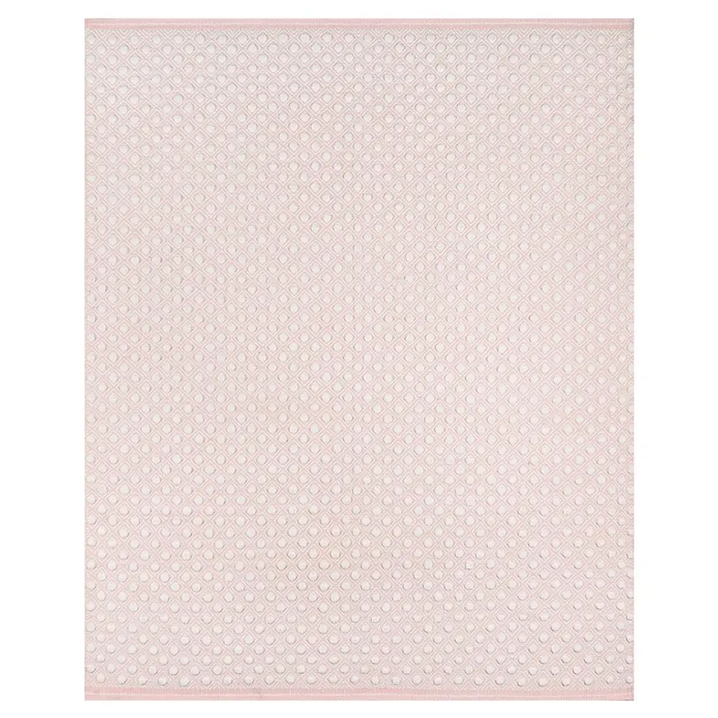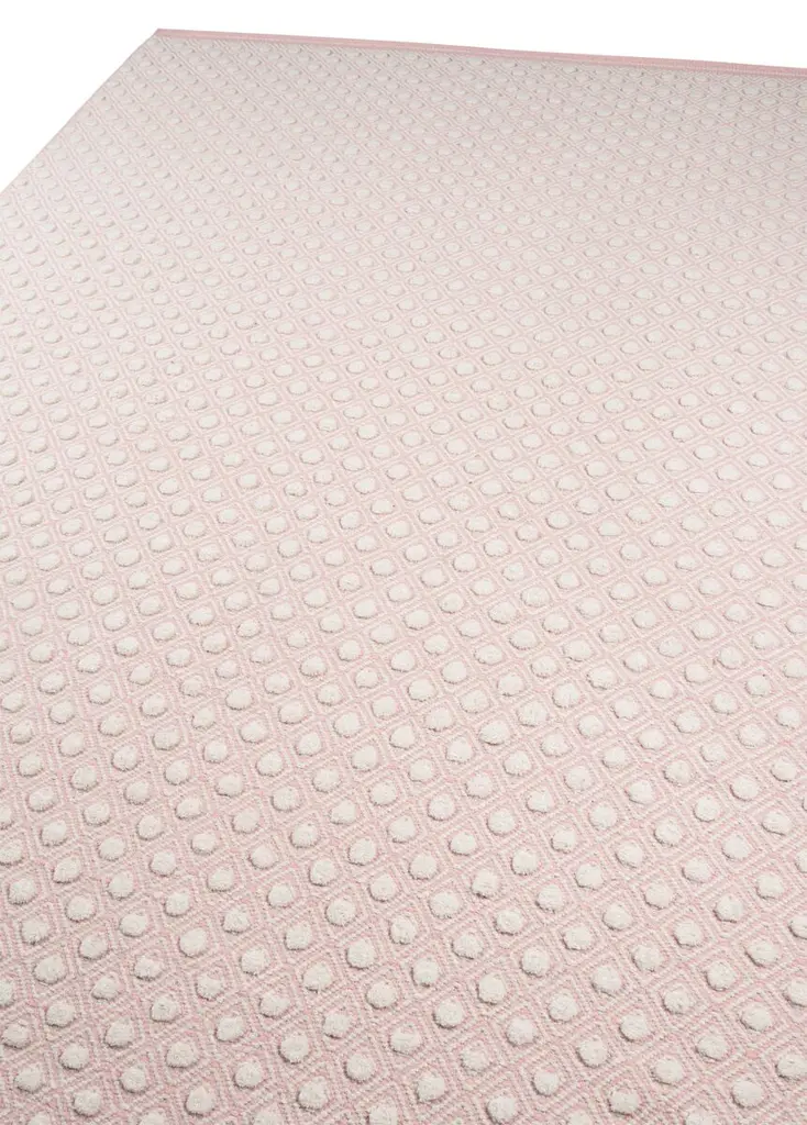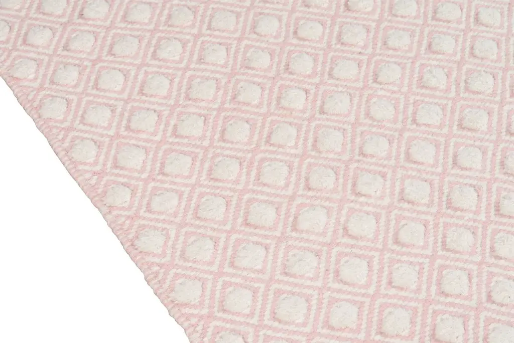 Handwoven of wool with a raised dotted design and sweet pink hue, this rug is great for bringing a hint of color and memorable texture to any room in your home. We recommend a rug pad to extend the life of your rug and keep it securely in place.