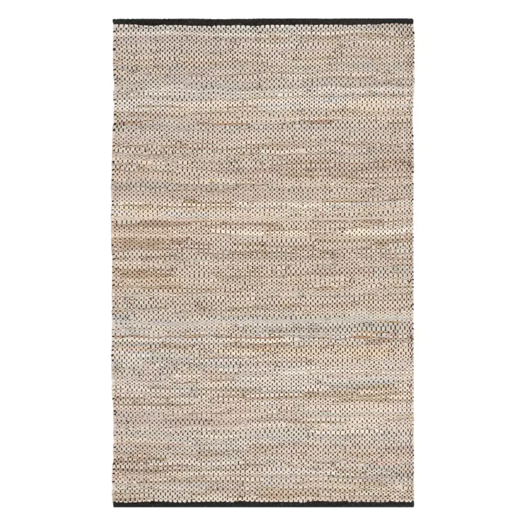 Styled for today's fashion focused decor, Winona Solid Woven Rugs indulge the senses with ribbons of genuine leather in textured flat weave patterns and engaging earthy hues. A swank interpretation of traditional cowhide area rugs, Winona Rugs lend edgy elegance to any mod-chic home furnishings. Crafted with multi-colored elements, it adds an energetic touch to the room that will create a cheerful atmosphere. The striped motifs create an effortless and timeless appeal to any décor style interior.