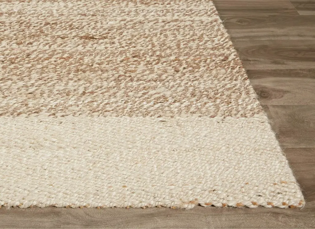 This handmade jute rug is rich in natural texture and neutral in color. An easy addition to any decor, we also love to pair natural-fiber rugs like this one with a supple hide to create a sophisticated, layered look.