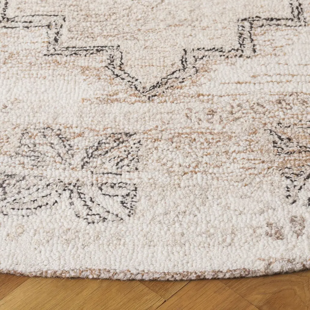 Elevate your living space with this exquisite 3' X 5' small rectangle area rug, a blend of tradition and luxury that comes alive in warm gold and soothing beige hues. Skillfully hand-tufted by artisans in India, this piece boasts a plush 3/8" pile height that invites you to step onto comfort and class. Crafted from a rich mix of 80% wool and 20% cotton, this rug promises not only superior durability and natural resistance to stains but also a soft, cozy texture underfoot. Ideal for high-traffic areas as well as intimate spaces, the wool's natural insulating properties will keep your room warm in winter and cool in summer, while the touch of cotton adds a delicate softness. The elegant pattern showcased in the image reflects a masterful combination of geometric and traditional motifs. The central diamond medallion, flanked by intricate stars and bordered by a zigzag line, evokes the timeless beauty of antique designs. Each symbol is meticulously crafted, creating a rich visual texture that captures both the eyes and the imagination. Whether you're looking to add a touch of opulence to your home office or a warm, inviting atmosphere to your living room, this area rug's understated elegance makes it a versatile addition to any decor. With its handcrafted quality, each piece carries the unique touch of its maker, transforming your floor into a canvas of artisanal heritage. Witness the harmony of luxury and craftsmanship in every thread with this