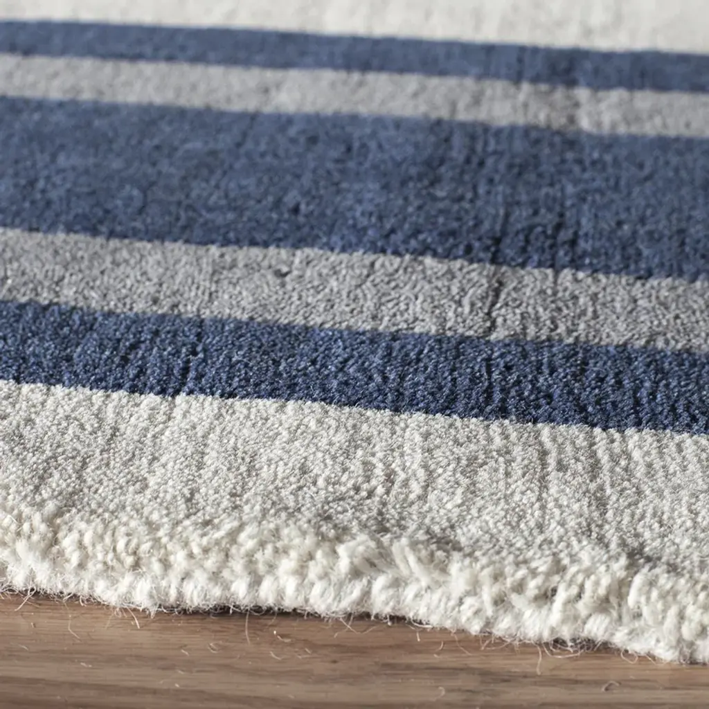 Winston Striped Handmade Tufted Wool Area Rug In Navy/ivory Rug