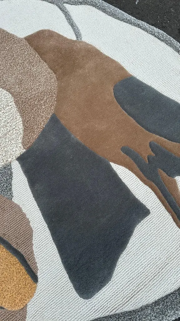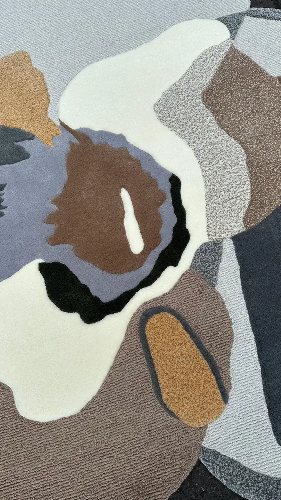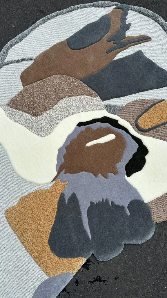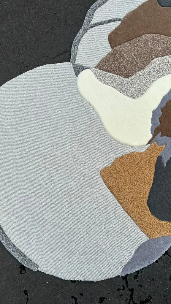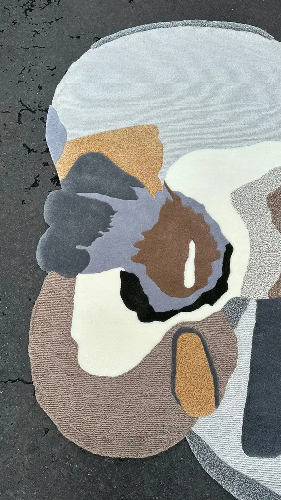 Winter Rose captures the quiet poetry of nature in hibernation a soft bloom frozen in time. This sculptural rug blends abstract floral gestures with geological layering, rendered in an earthy palette of warm ochre, soft grey, ivory, and charcoal. The composition feels spontaneous yet grounded, like petals caught in a swirl of wind or fossilized in stone. Hand-tufted with a variety of pile heights, the surface creates subtle shadows and depth, adding dimensionality to its painterly form. Its irregular silhouette enhances the organic feel, breaking away from conventional formats to become a statement piece. Winter Rose is perfect for interiors that embrace artistry and emotional resonance serving not only as a rug, but as a tactile artwork beneath your feet.