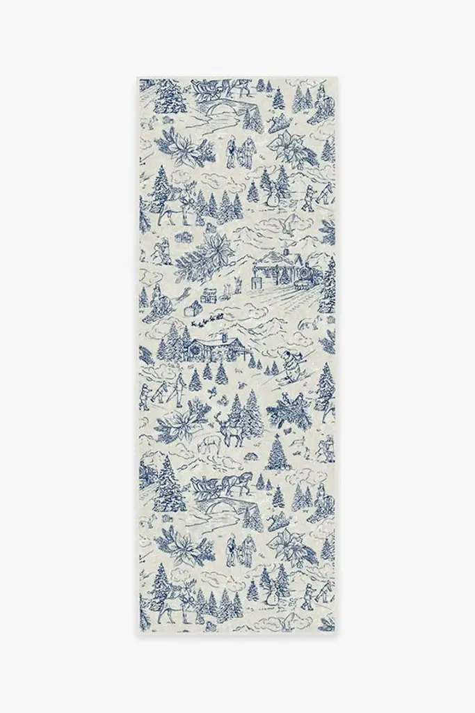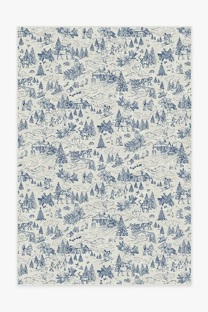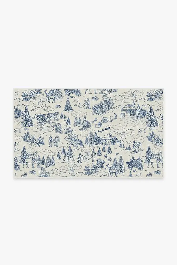 Brighten up your home with scenes of holiday cheer this winter. Our Winter Toile Blue Rug features detailed linework illustrating festive Christmas scenes, creating the classic toile look. The pearl cream background paired with denim blue accents is the perfect color scheme for a light and airy winter scene. Water-resistant, stain-resistant, and machine-washable.