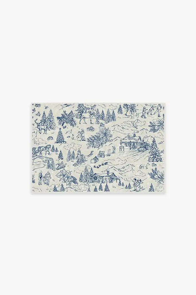 Brighten up your home with scenes of holiday cheer this winter. Our Winter Toile Blue Rug features detailed linework illustrating festive Christmas scenes, creating the classic toile look. The pearl cream background paired with denim blue accents is the perfect color scheme for a light and airy winter scene.