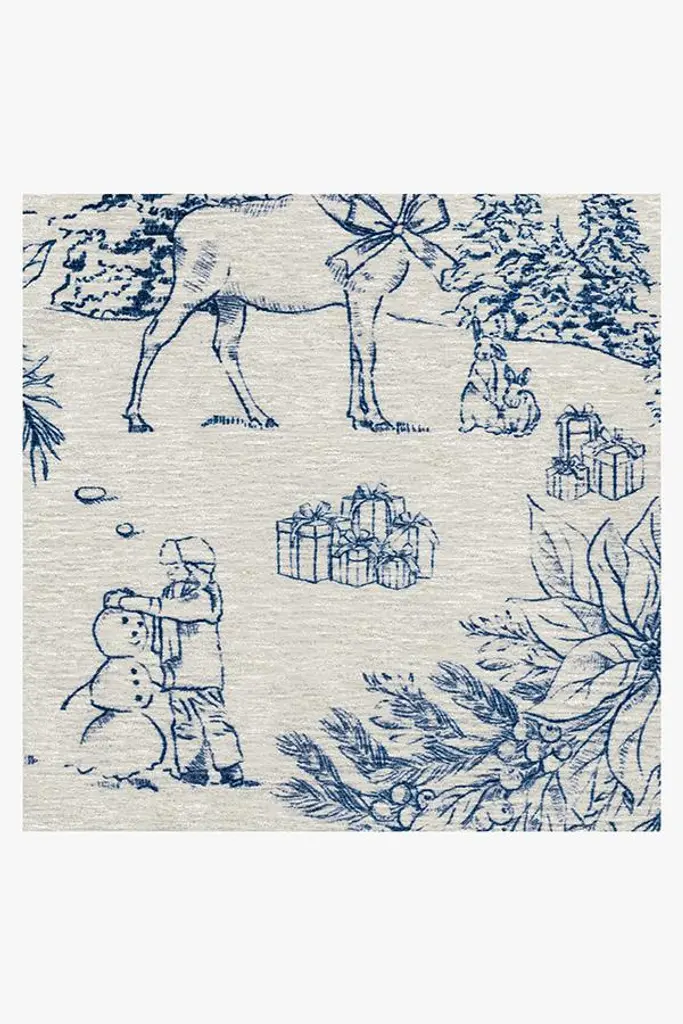 Brighten up your home with scenes of holiday cheer this winter. Our Winter Toile Blue Rug features detailed linework illustrating festive Christmas scenes, creating the classic toile look. The pearl cream background paired with denim blue accents is the perfect color scheme for a light and airy winter scene.