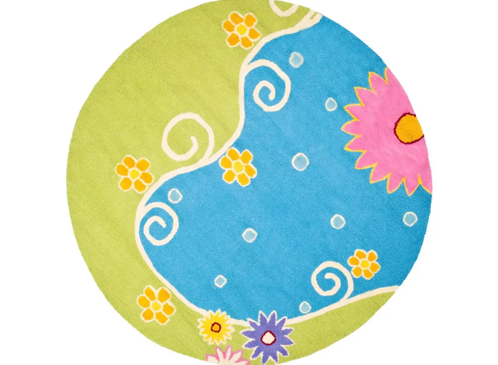 The Winterbourne Kid's Rug features a colorful design with geometric shapes for a fun addition to your kid's room. These rugs are made with pure soft wool and hand-tufted to a cotton backing for added cushion.