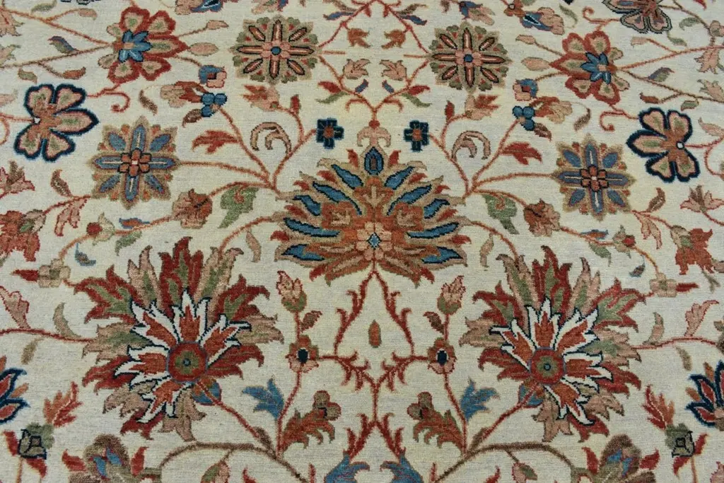 Nice new rug with beautiful decorative indo Persian design and nice colors, entirely hand knotted with wool velvet on cotton foundation.