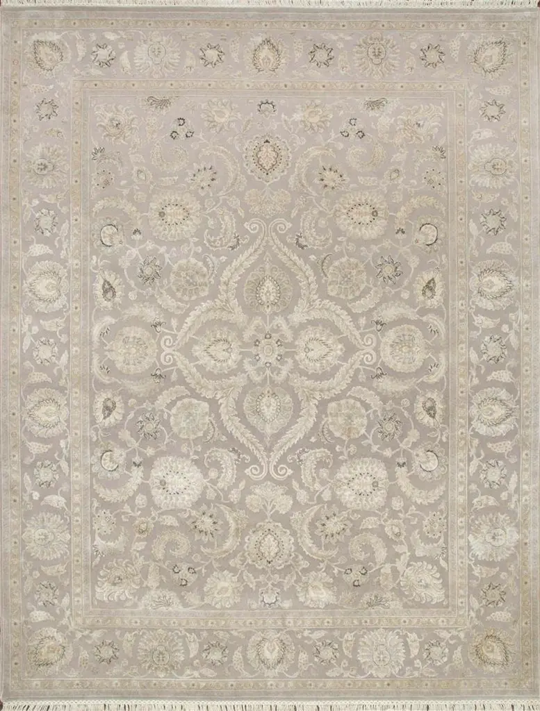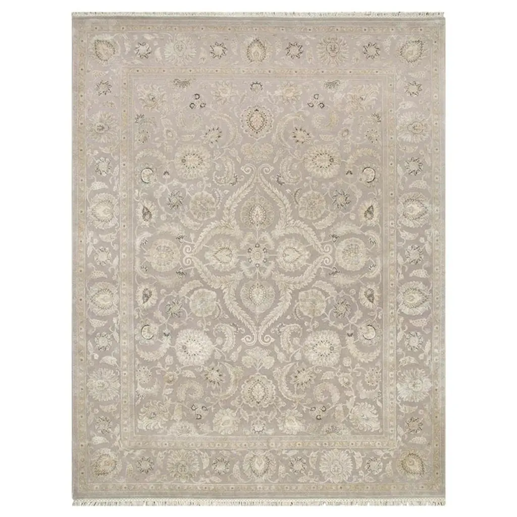 Nice new rug with beautiful decorative Indo Persian design and nice colors, entirely and finely hand knotted with wool and silk velvet on cotton foundation.