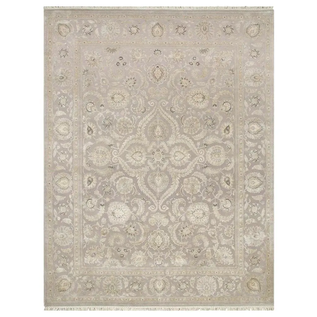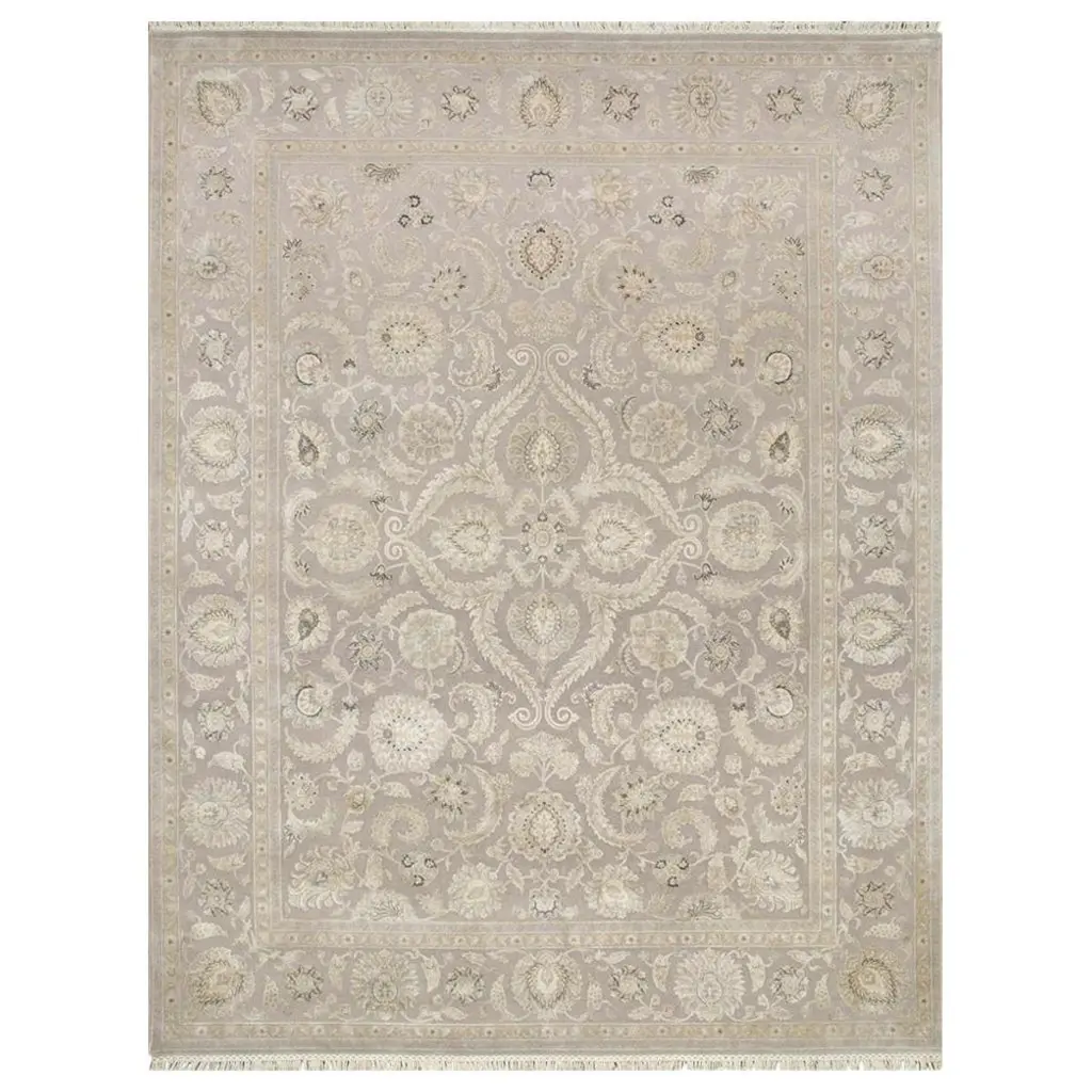 Nice new rug with beautiful decorative Indo Persian design and nice colors, entirely and finely hand knotted with wool and silk velvet on cotton foundation.